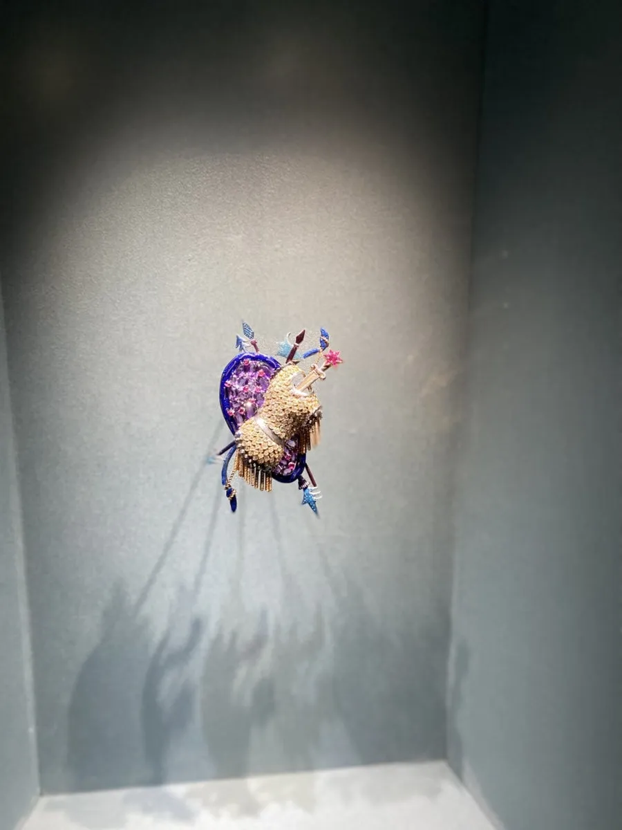 창과 방패, 갑옷과 화살로 구성된 작품이다. 보라색, 파란색, 황금색 계열을 조화롭게 썼다. 방패와 갑옷이 서로 반대 방향으로 되어 있는 것은 구도를 맞추기 위함인 것 같고 활과 화살을 뒷부분에 놓아 좀 더 화려해보이게 하였다. 갑옷 안에 검이 꽂혀 있는 것은 무장한 군인을 나타내는 것 같기도 하지만, 어떤 갑옷도 전투와 살상을 대변하는 검에 의해 방어될 수 없다는 걸 나타내는 것 같기도 하다. 전쟁이란 결국 전쟁으로 끝이 나는 것이다. 보석 디자인으로 자본주의에 화려하게 편승한 티파니앤코가 전쟁 무기들을 단순하게 아이템이나 모티브로 사용했을 수도 있지만, 아무래도 지금과 같은 문화적 가치를 누리기 위해서는 전쟁이란 반대해야 할 수밖에 없지 않을까.