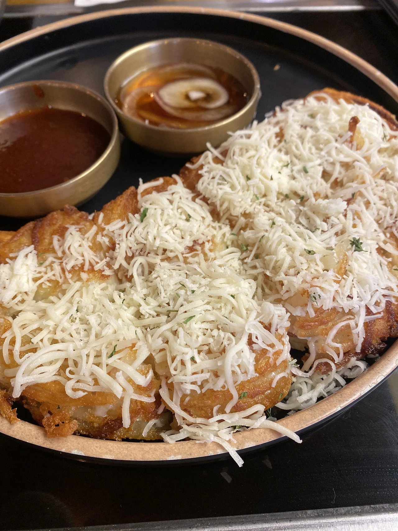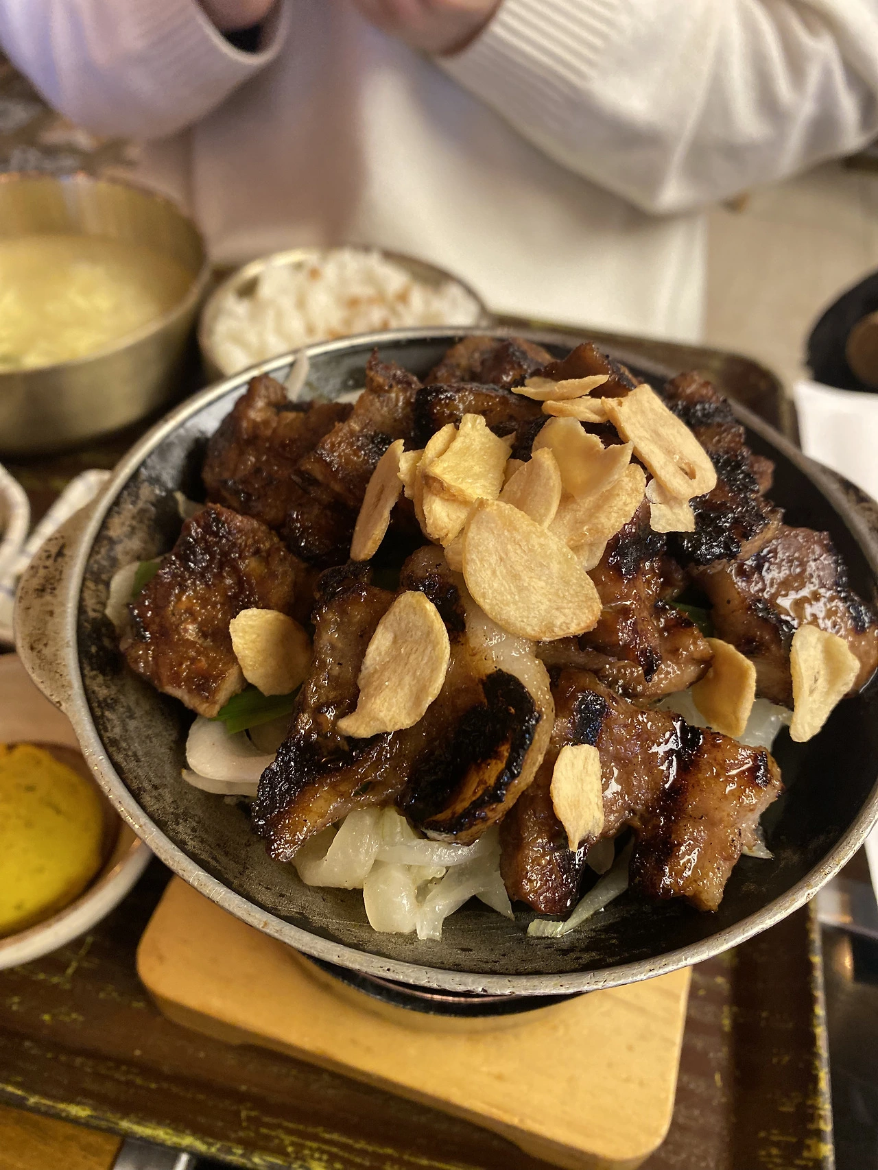 오늘은 남자친구와 코엑스에 있는 광화문 석갈비라는 가게에서 보기로 했다. 광화문 석갈비가 어디 있는지 찾는 건 쉬운 일이 아니었다. 그래도 겨우 찾을 수 있었다. 광화문이라는 한자어가 로고 형태로 적혀 있는 가게를 보고 반가웠다. 내가 길을 잘못 알려줘서 남자친구도 헤맸는데 잘 찾아왔다. 우리가 가게 안으로 들어갈 때 문 앞에 직원 한 분이 서 계셨다. 그리고는 우리에게 바로 안내를 해주셨다. 문 앞에서 인사를 해주시는 직원 분까지 계실 정도로, 광화문 석갈비 안에는 직원분들이 많이 있었다. 손님들에 비해서도 많은 편이었다. 덕분에 빠르게 응대를 받고 서비스를 받을 수 있었다. 남자친구는 갈비구이를 주문했고, 나는 고기가 들어간 매콤크림파스타를 주문했다. 치즈 감자전도 시켰다.