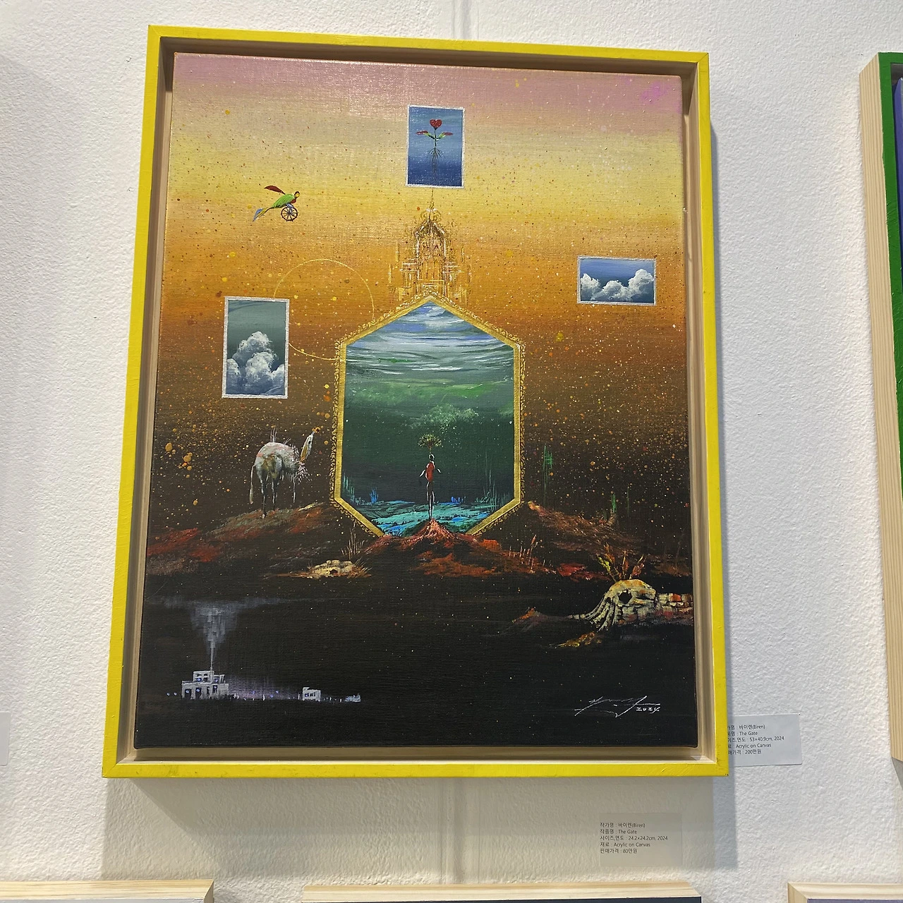 그러고 나서 거의 모든 작품을 찬찬히 돌아볼 수 있었다. 가장 마음에 든 작품은 사진으로 찍어 놓았다. 내가 정말 예쁘다고 말하자, 그 전시관에 있던 분이 꿈으로 들어가는 장면을 그린 것이라고 알려주었다. 나는 몽환적이면서 꿈 속으로 들어가는 아름다운 풍경이 참 마음에 들었다. 남자친구는 그림이 좋은지 하나하나 집중해서 보고, 호기심을 갖고 돌아다녔다. 나는 반대로 그림 보는 게 금세 지루해졌다. 그렇지만 오랫동안 보고 나니까 다양한 작품들을 온전히 감상할 수 있어서 좋았다.