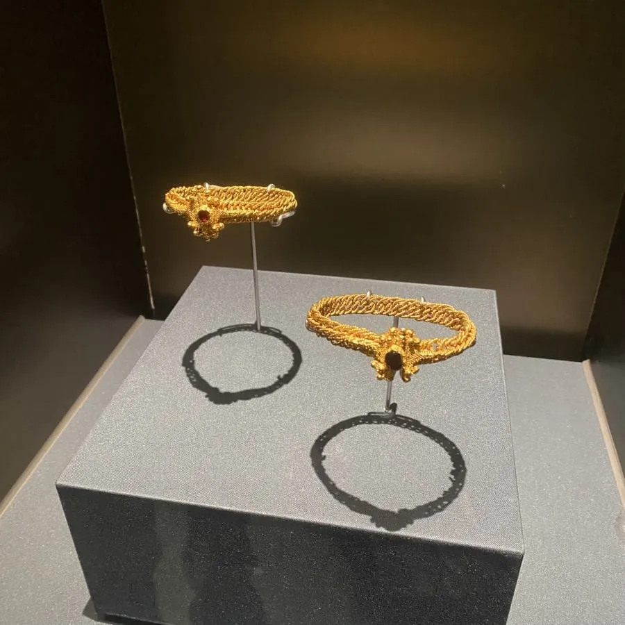 이건 순금으로 만들어졌던 것 같다. 굵어서 남성적인 느낌이 들고 뱀이 또아리를 튼 것 같기도 하다. 가운데 보석이 황제를 상징하는 것 같다. 제국의 황제나 여왕이 사용했을 것 같다. 여성적으로 화려하기보다는 웅장하고 힘이 느껴진다.