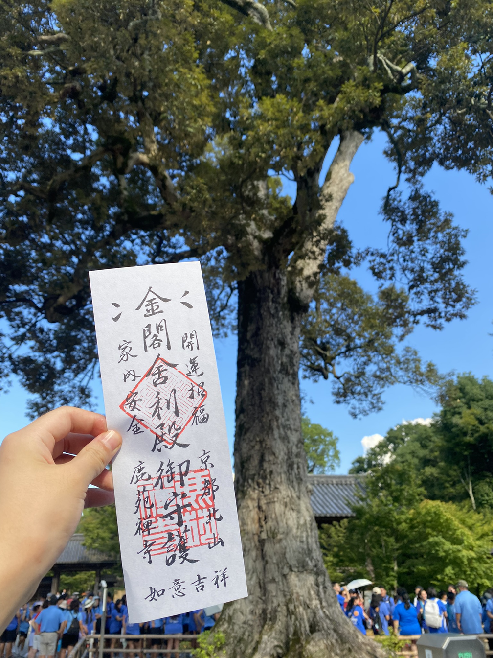 호수를 지나 금각사의 뒷면을 보고 언덕으로 올라갔다. 사람이 주먹을 쥔 모양으로 부풀어 오른 구름이 여러 사찰들과 하늘의 경계를 이뤘다. 나오는 길에 사당처럼 종이를 줄에 묶어놓은 것이 있었다. 나무 판자에 그림이 있고 기원문이 적힌 것도 보았다.