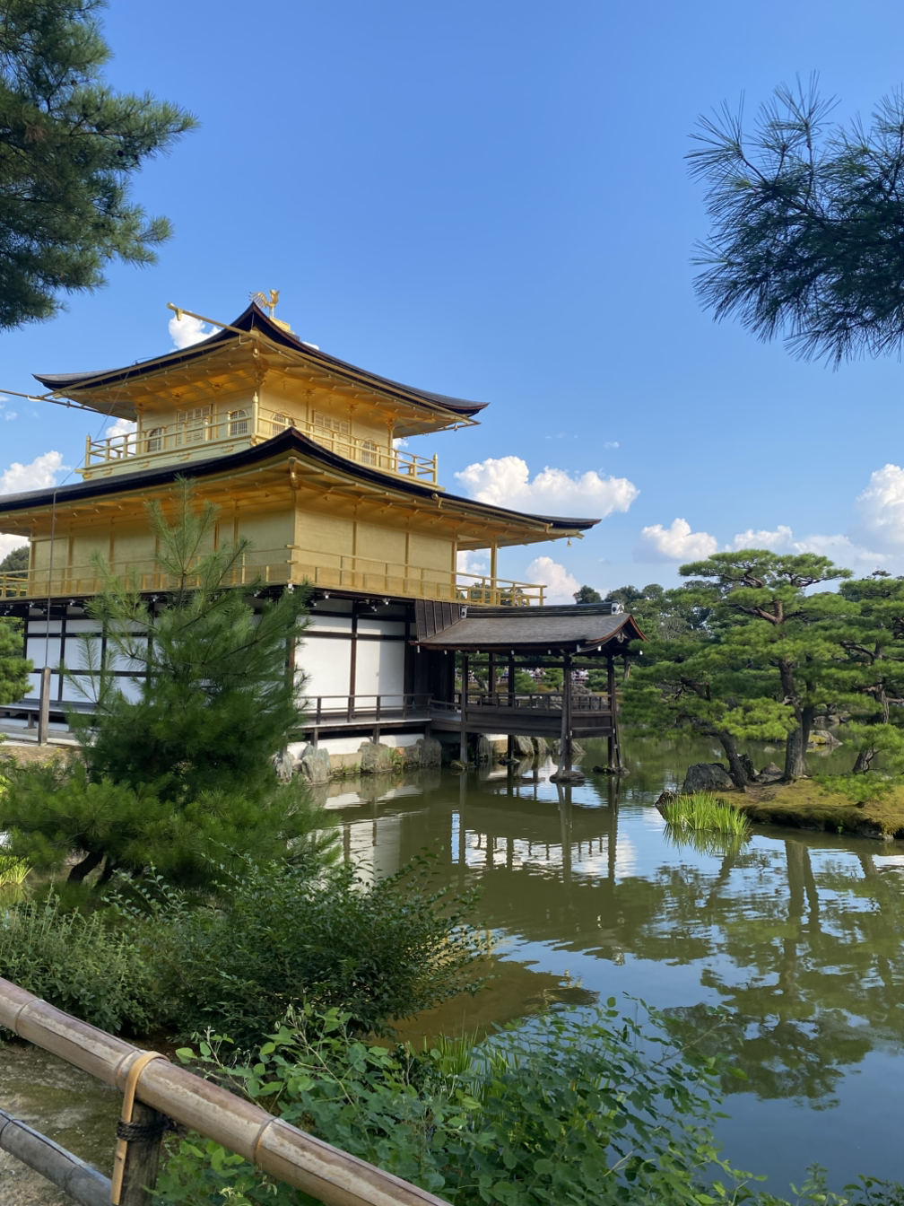 금각사에 도착해서 입구에서 표를 샀다. 한자가 세로로 적혀 있는 부적같이 생긴 입장권을 받았다. 곧게 솟아있는 나무가 우리를 반겨 주었다. 굵고 우람한 나무는 가지를 구렁이처럼 옆으로 뻗었고, 자잘한 잎들이 그에 아주 많이 붙어 있었다. 잎사귀가 봄의 것처럼 새파랗지는 않고 힘이 있어 보였다. 아름다운 풍경을 구경하면서 걸어가다가 황금으로 된 집이 호수 위에서 모습을 드러낸 걸 보았다. 물 위로 금이 드리워졌다. 키가 작은 소나무가 옆에 서서 청아하고 맑은 분위기를 냈다. 1층을 제외한 벽과 창문, 기둥 모두가 황금이었다. 목재와 황금이 어우러져 화려한데도 경박하지 않고 차분해 보였다. 지붕은 날렵한 곡선을 그렸다. 정교한 건축 양식에 금을 입혀놓았다는 사실 하나만으로 이 금각사는 신비하고 기이해 보였다. 사람이 살 수 없는 장소였다. 생명력이 없고 흔적이 없는 아름다움이었다.