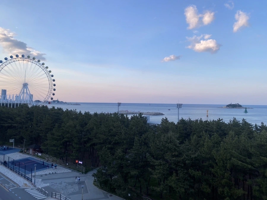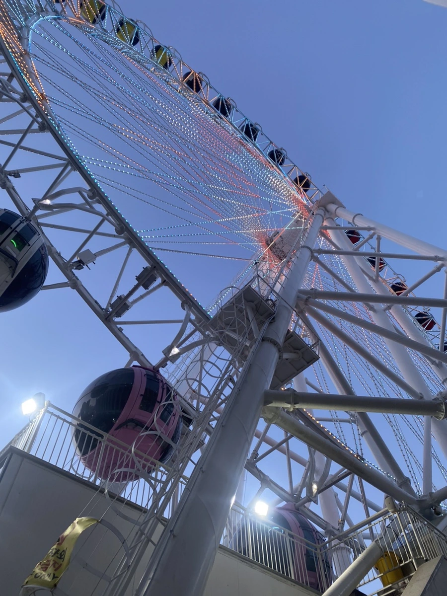 줄을 서서 기다려야 했다. 우리는 속초아이를 타고 노을을 보면 좋겠다고 생각했는데, 대기 시간하고 계산해보니 어려운 일이었다. 우리가 탈 무렵은 어둠이 내려왔을 때였고, 동그란 속초아이에 올라타자 바람이 거세게 불어댔다. 높게 올라갔을 때는 속초아이 전체가 흔들렸다. 우리한테는 태풍이 치는 것 같았다. 놀랍고 두려웠다. 바람 소리도 보통이 아니어서 떨어지는 것 아니냐고 벌벌 떨기도 했지만, 쉽게 할 수 없는 경험이라는 데에는 동의했다. 가장 높이 올라갔다가 내려갈 때 나도 무서웠다. 그래도 어둠의 바다는 아름다웠고 수평선은 남색이었다.