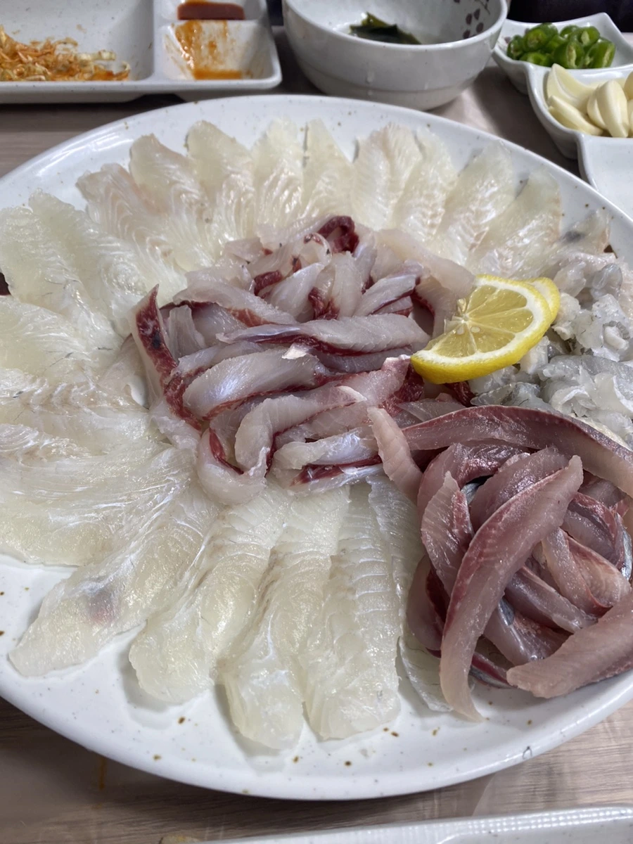 우리는 은진네 횟집에 가서 회를 주문했다. 가는 길이 멀어서 뛰어갔더니 추위가 좀 가셨다. 모듬회를 주문했고 콩가루와 초장이 뿌려진 양배추 썬 것과 함께 쌈을 싸서 먹었더니 맛이 좋았다. 고소한 맛이 퍼지고 매콤한 초장이 어우러지고, 도톰한 생선살이 싱싱하게 씹혔다. 회를 쌈싸먹는 건 잘 해보지 않았는데, 굉장히 새롭고 맛있었다. 회만 먹으면 심심한 적이 많았는데 쌈을 싸니 맛이 풍부했다. 매운탕도 주셨다. 쫀득한 수제비가 많이 들어 있었다. 국물이 진하고 깊었으며 달았다. 아주 맛있는 식사였다.