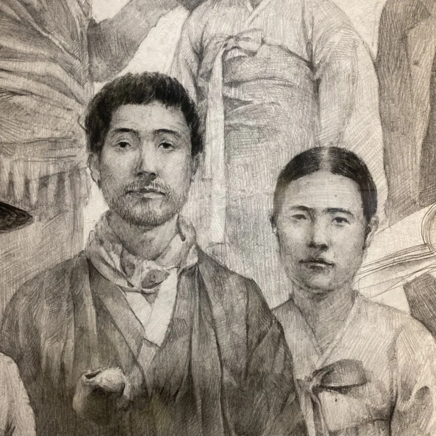 궁금하던 서희의 얼굴도 볼 수 있었다. 아래 사진의 왼쪽은 최참판, 오른쪽은 길상이다. 가운데가 서희.