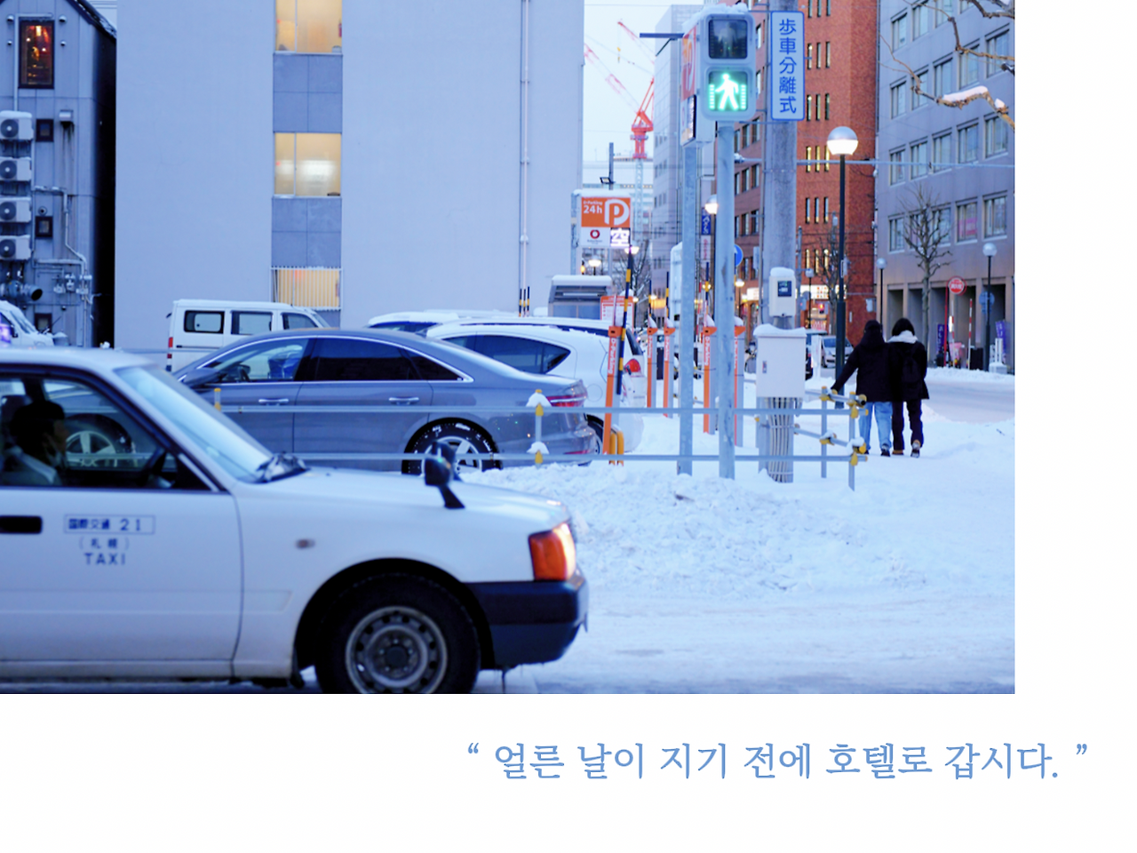 눈의 도시에 어둠이 스멀스멀 찾아오고 있었거든.