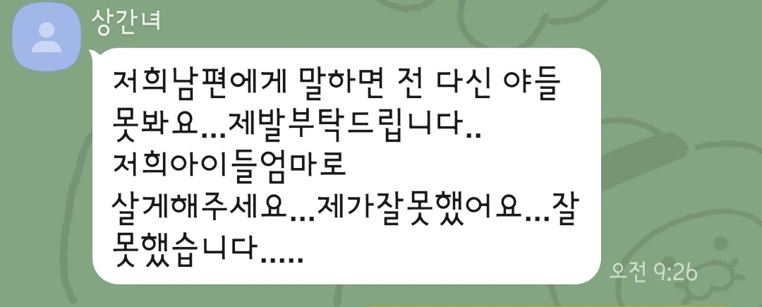 한가정을 망가트린 널 용서하지 않겠다며