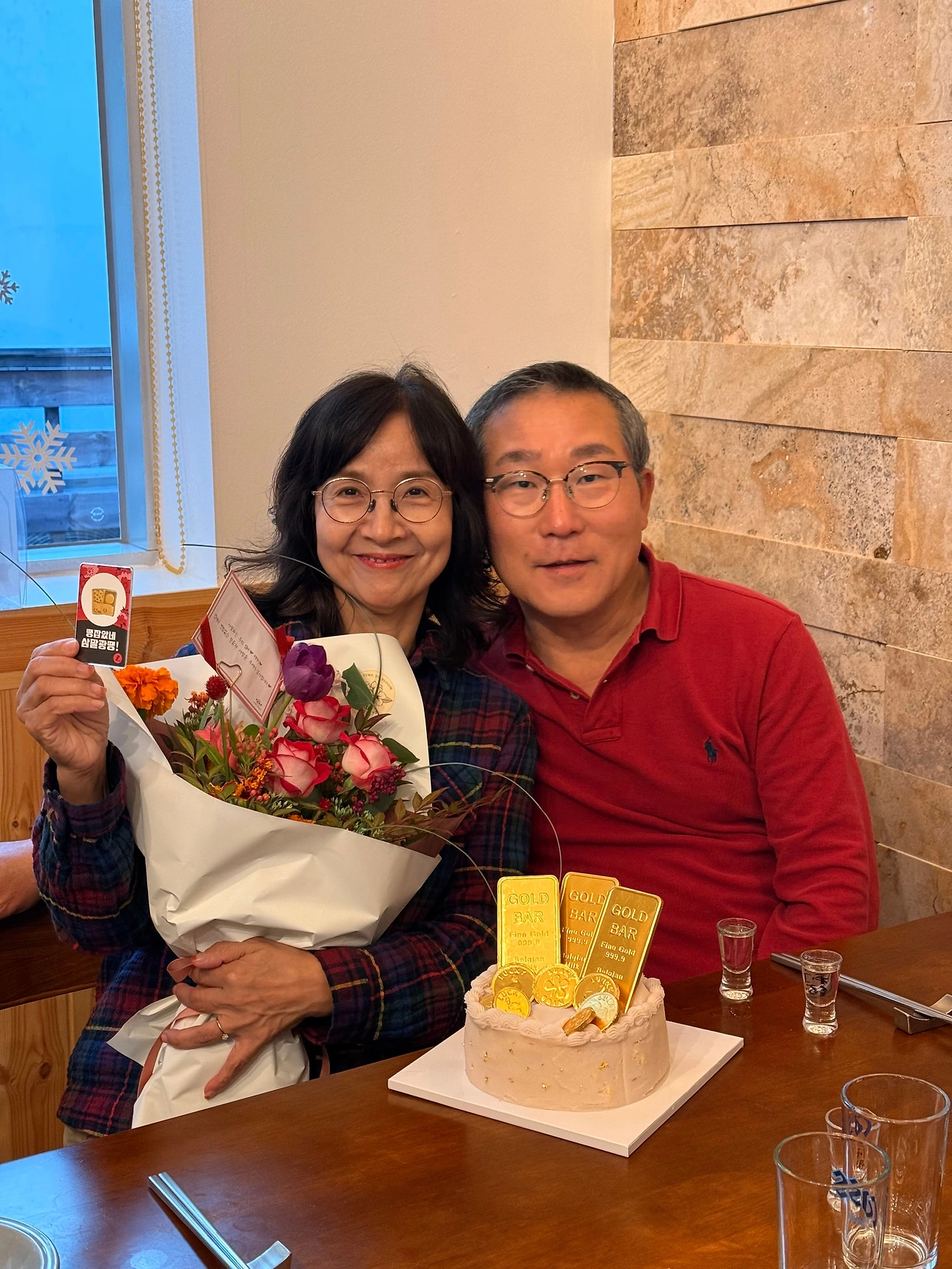 지유 누나가 준비한 골드바 떡 케이크로 엄마의 60년을 축하했다.