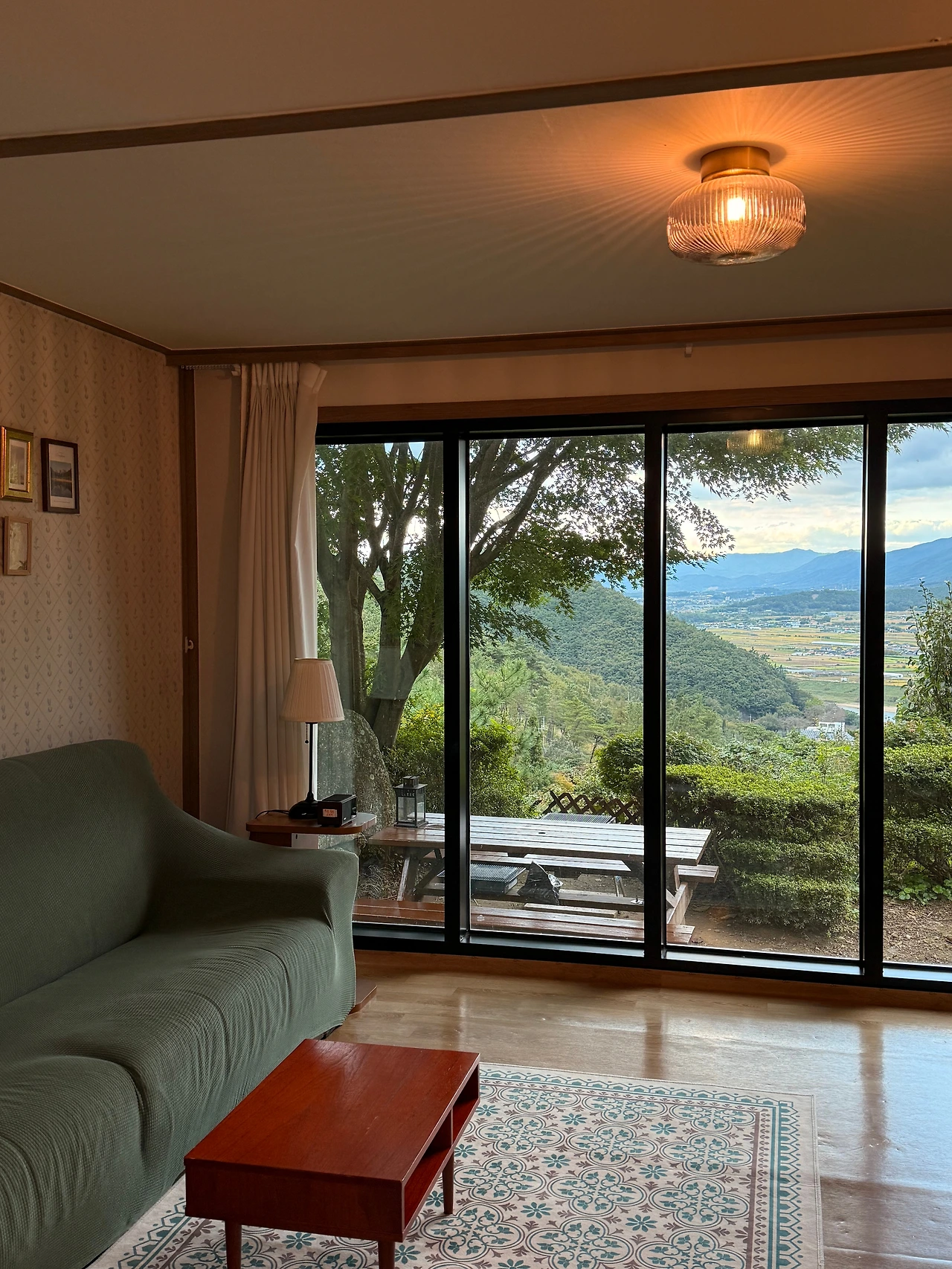 현지와 바베큐도 해 먹고(앞머리 태워먹은 건 비밀이다), 매일 저 창 밖으로 보이는 구례를 보며 평화로이 하루를 시작했다.