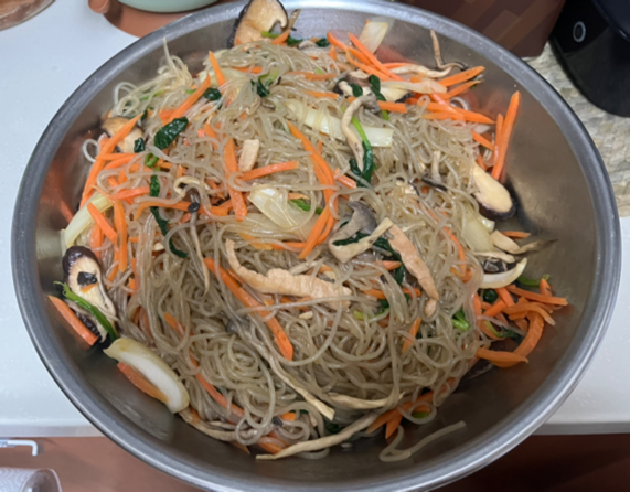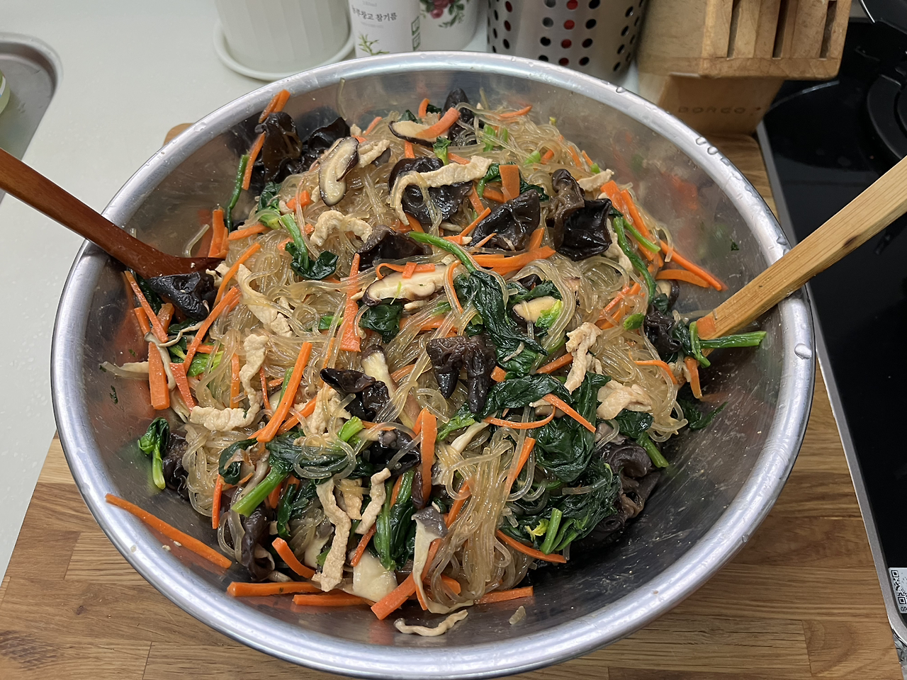 손이 큰 나는 한 번에 자른 당면 1kg을 다 써서 잡채를 만든다. 그렇게 만들어도 일주일이면 끝이 나니 남편의 먹성은 먹깨비 수준.