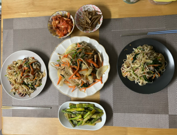 상차림을 하고 보니 뭔가 이상하다. 잡채가 메인인데 쌀국수 볶음이 또 메인이다.