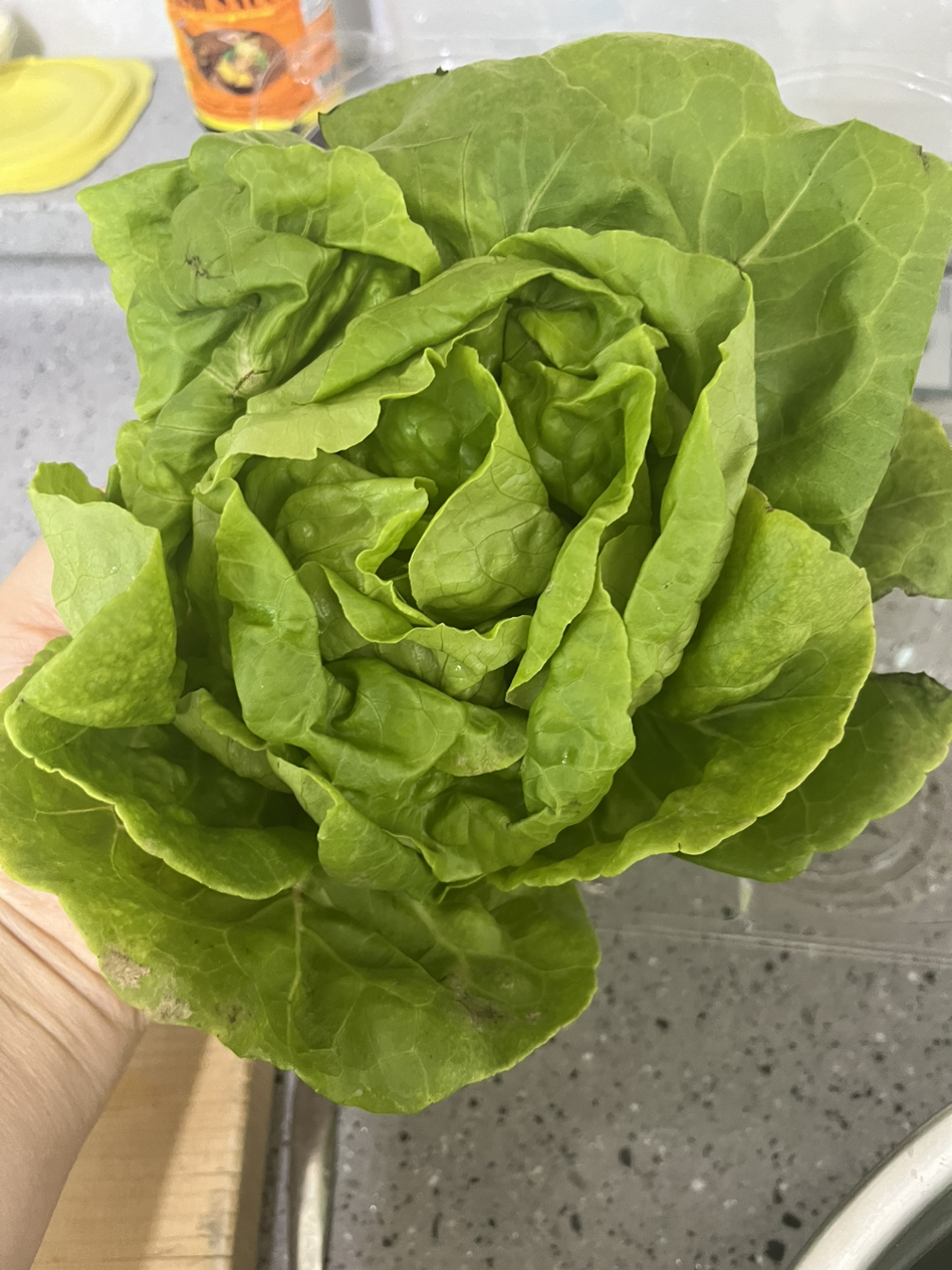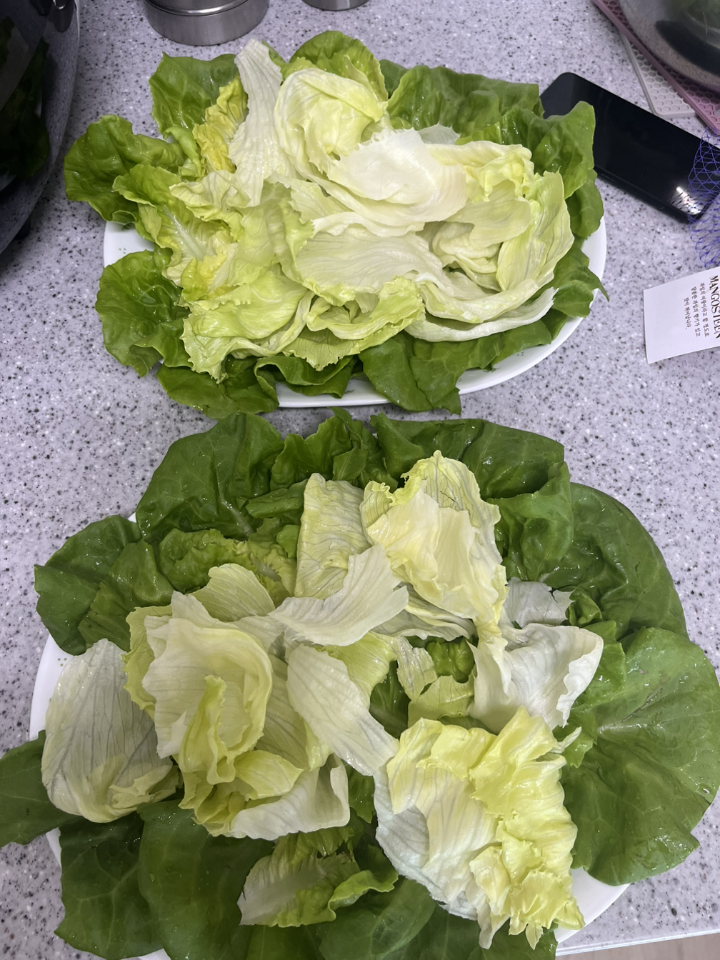 이것에 이름은 버터 헤드 레터스. 아삭한 식감이 좋고 향긋하다. 우선 상에 내기에 모양이 좋은 게 최고!