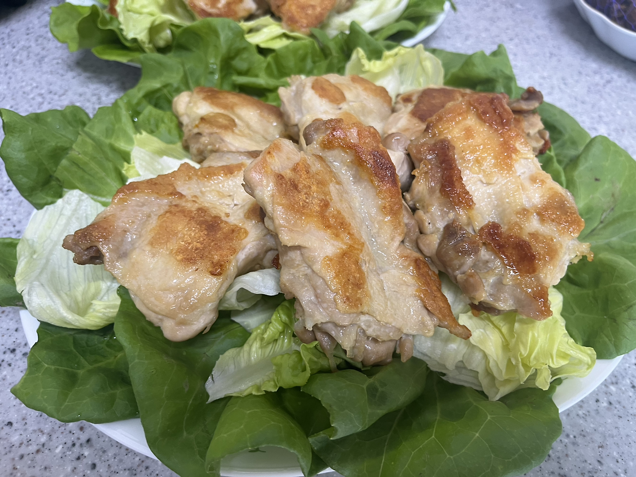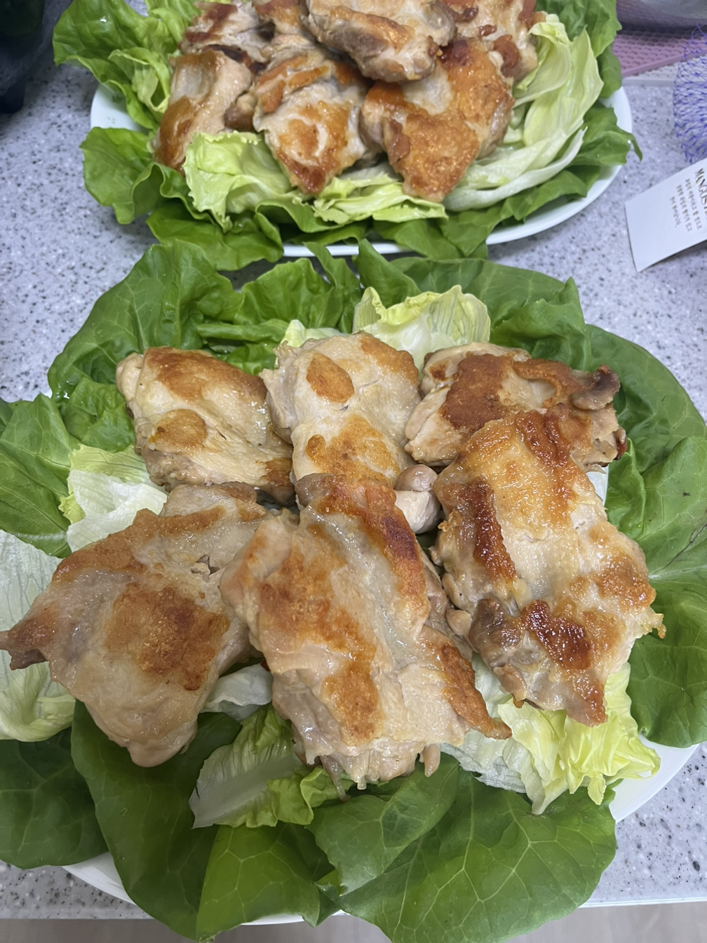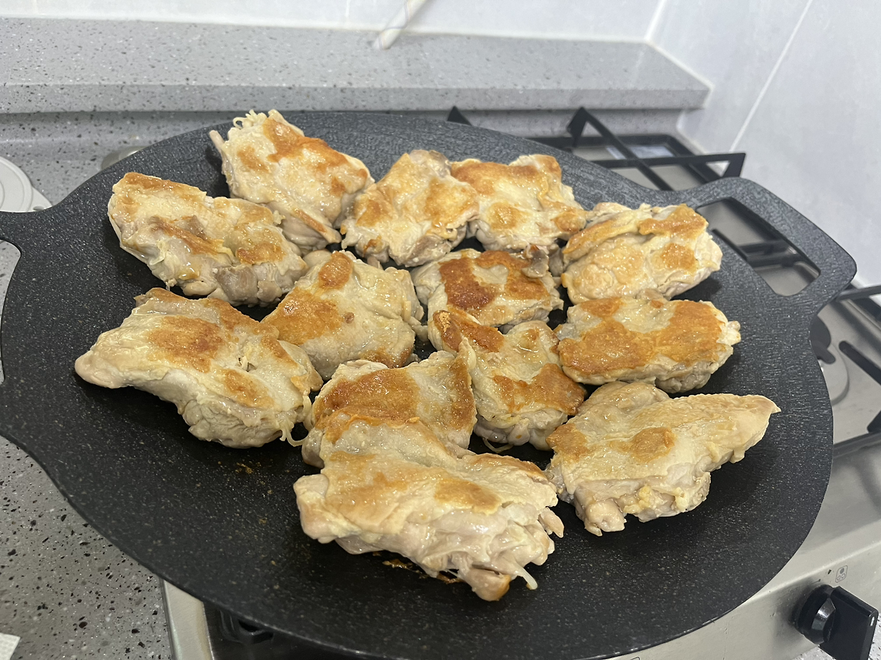 노릇하게 잘 구워진 닭갈비를 올려 소스를 뿌리면 끝이다. 이 요리의 이름은 알지 못한다. 이참에 봄덝봄닭이라고 지어볼까?