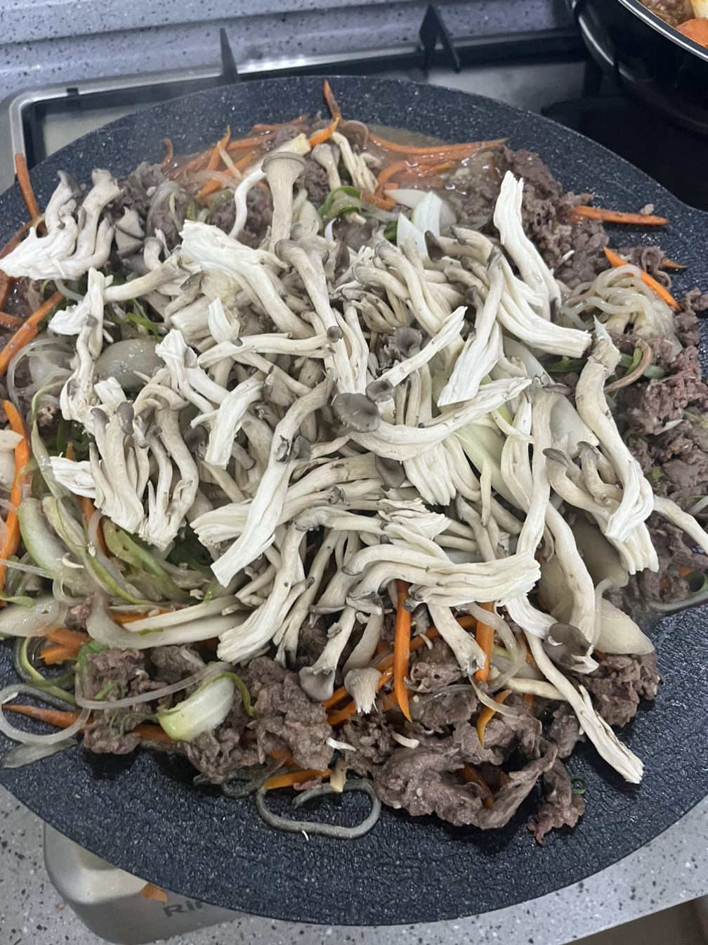 버섯 잡채 소불고기도 했다. 느타리버섯과 팽이버섯을 넣고 양파채, 파채 그리고 당면까지 넣어서 잡채 양념으로 재운 소고기와 함께 끓여주었다. 뭘 해도, 아무리 조금만 하려 해도 5인분 이상 만들어지는 이상한 손을 가진 나. 점점 양이 많아지는 건 내가 어떻게 하지 못한다. 뭐, 모자란 것보다 남는 게 조금은 낫지 않나 하면서, 마음을 다독인다.