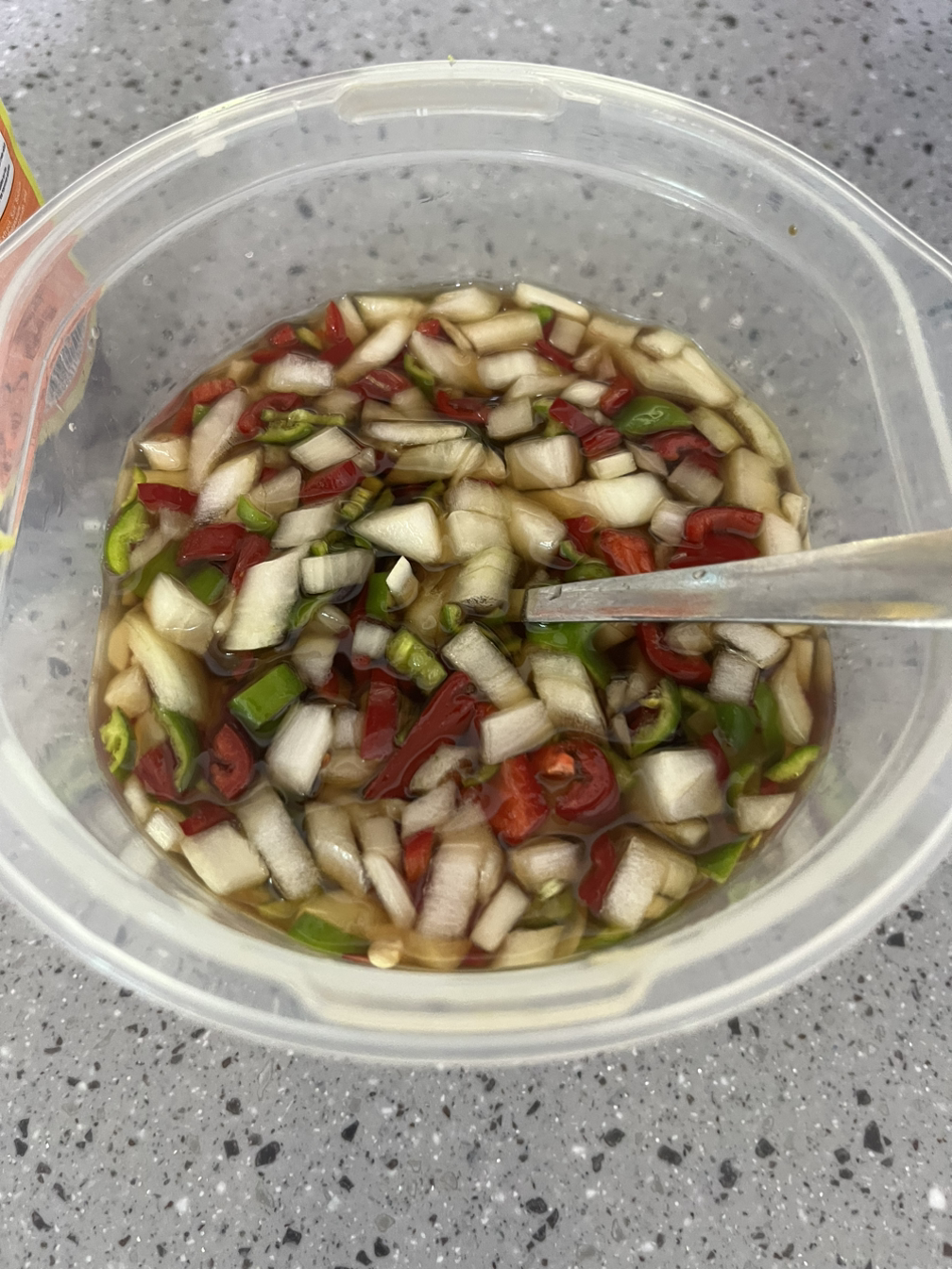 소스는 피시 소스에 식초와 매실액, 간장 조금 그리고 색색 청양고추와 양파를 아주 작게 썰어서 넣어 만든다. 중간중간 간을 봐야 한다. 너무 짜지 않도록. 물론 피시 소스가 없다고 해도 걱정할 필요 없다. 집에 있는 멸치 액젓국을 희석해 쓰면 된다.
