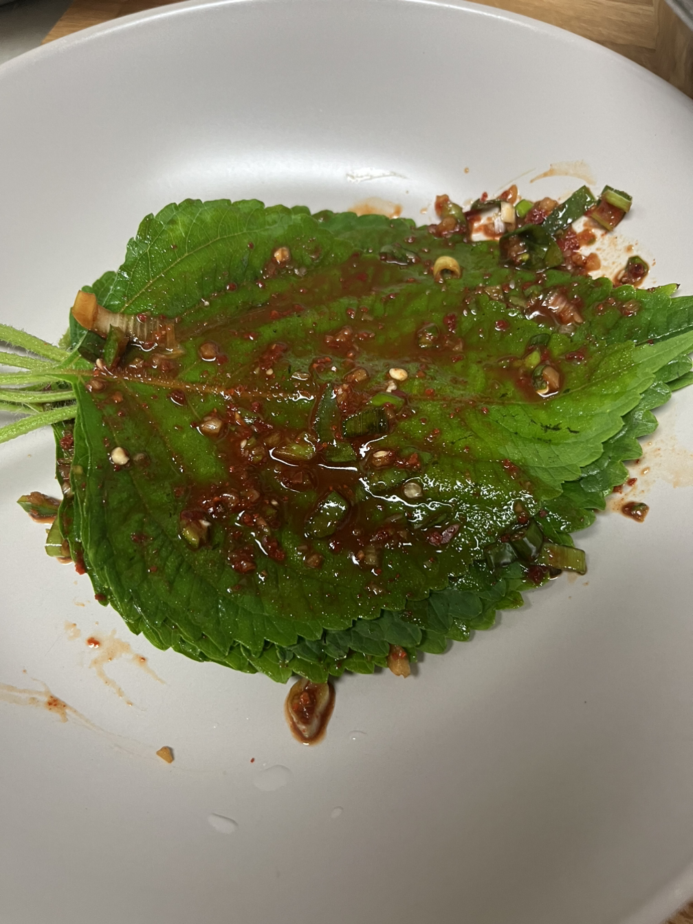 익숙하지만 상큼하고 속 시원한 매콤 쌉싸래한 맛이 입과 코를 순식간에 점령한다. 내가 만들었지만 너무 칭찬해 주고 싶어 질 맛이다. 양념장이 너무 맛있어서 양념 깻잎을 깻잎에 싸서 먹는 지경에 이르렀다. (주방에 서서 깻잎에 깻잎장 싸먹고 있는 내 모습을 떠올려 보니 현타가 온다.)