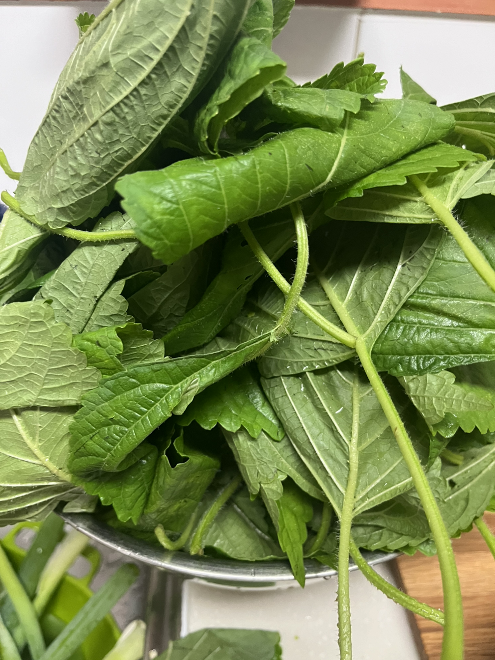 마당 가장자리에 웃자란 깻잎을 한 무더기 베어 챙겨주신 시어머니. 전에는 요리를 하기 위해 장을 보았다면 요즘은, 재료를 보고 요리할 것을 상상한다. 보통 들깻잎으로는 부침개 몇 장 부쳐먹거나 숨을 죽여 나물반찬을 해 먹었는데, 이번엔 뭔가 새로운 걸 하고 싶어졌다. 이렇게, 저렇게 머리를 굴리다 넓은 잎들만 모아 양념을 하기로 했다.