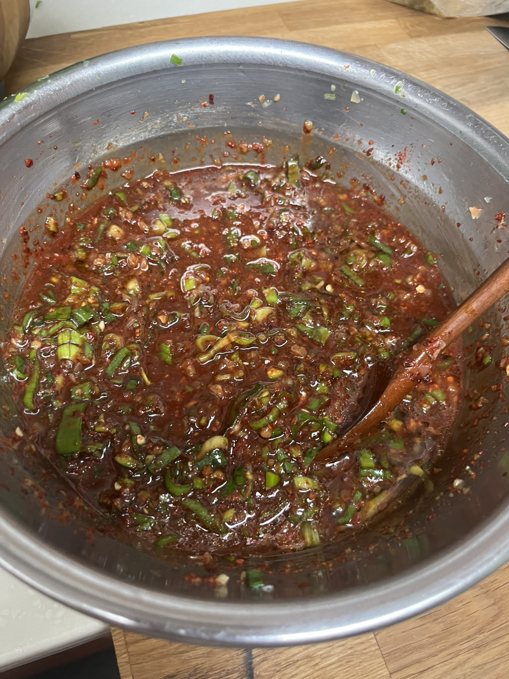 아는 맛이 제일 무서운 법! 청양 고추를 다져서 넣고 마늘, 진간장, 매실액 조금, 식초 레몬, 꿀 조금, 멸치액젓도 조금 넣었다. 고춧가루도 넣고.
