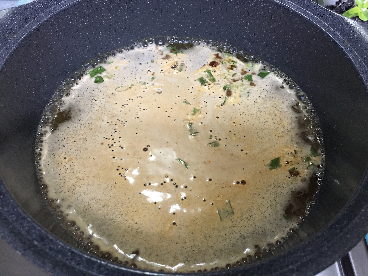 바라 깻잎을 먼저 넣고. (생각해보니 제일 마지막에 넣었어야 했는데)