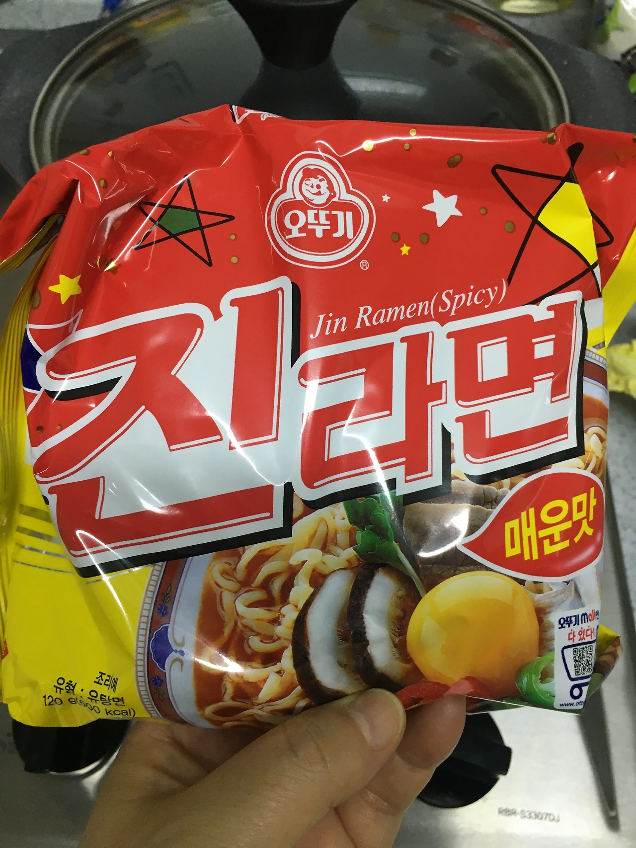 오랜만에 라면을 끓였다. 오뚜기 진라면 매운맛.