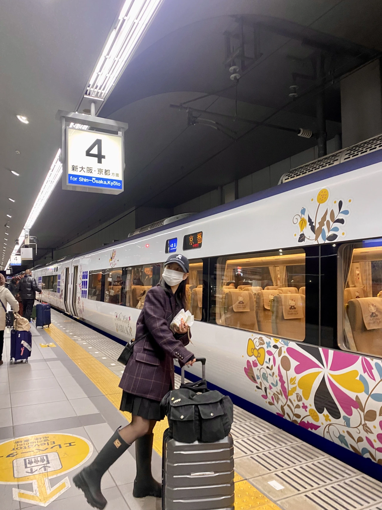 나는 여행 첫날 간사이국제공항에서 교토로 이동해야 했다. 복잡하지 않게, 빠르게, 쾌적하게 이동하는 걸 목표로 JR 기업에서 운영하는 하루카특급열차를 탔다. 친숙한 캐릭터인 키티로 디자인된 하루카특급열차. 진짜 귀여웠다. 저 귀여운 기차를 탈 수 있다니. 블로그로 검색해서 봤을 때부터 기대했는데 실제로 만난 하루카 키티, 너무 귀여워서 하루카랑 사진도 찍었다.