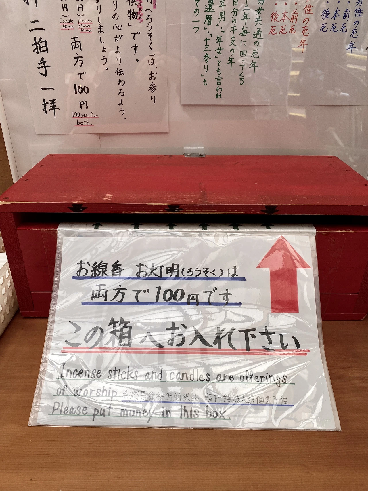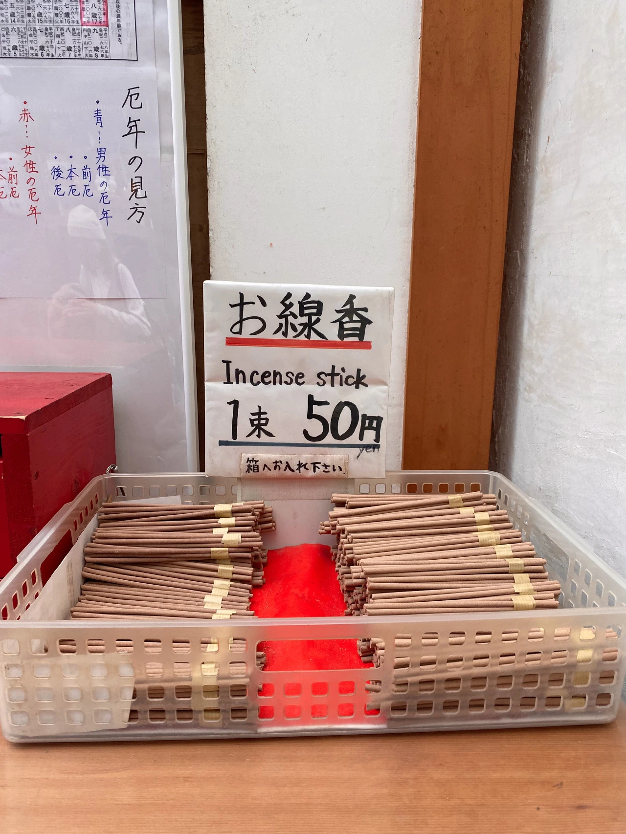 신사 한 바퀴를 다 둘러보고 내려가는 길에도 참배할 수 있는 곳이 있었다. 인센스 스틱 1개 묶음에 50엔이다. 기도에 기도를 더하면 소원이 더 잘 이뤄질까? 후시미이나리를 떠나기 직전 마지막까지도 향을 태우며 기도를 올렸다. 저와 가족들, 친구들 모두 돈 잘 벌게 해주세요…! 진짜 진지하게 빌었다... 부적도 샀다...