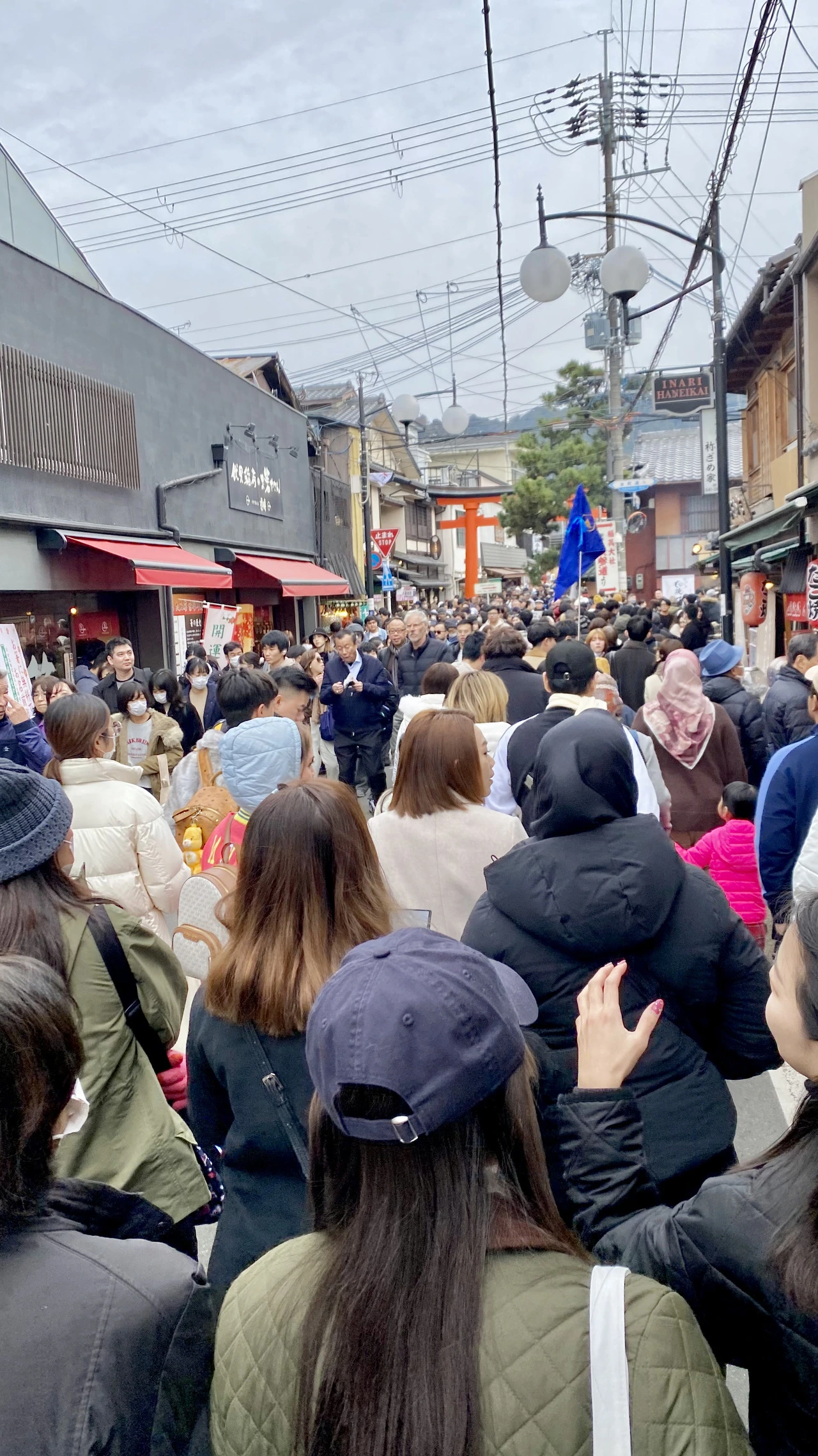 후시미이나리를 방문했던 후기들을 보면 신사를 다 둘러보는데 1시간 정도 소요된다고 쓰여있었지만 내가 머물렀던 시간은 3시간이었다. 도리이 길을 따라 천천히 걸으며 풍경을 감상하고, 참배도 드리고, 곳곳에 있는 작은 신당들도 구경하고, 기념품 가게도 둘러보니 시간이 금방 지나갔다. 평소에도 방문객이 많은 곳이지만 새해라서 그런지 훨씬 더 많은 인파가 몰렸다. 한적할 때 방문하면 감상에 더 도움이 되겠지만 새해 특유의 북적북적 활기찬 기운이 가득해 그것 나름대로 좋았다.