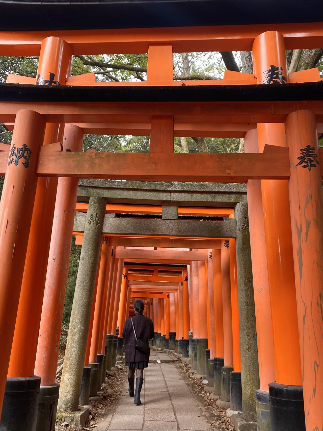 후시미이나리의 여우 동상, 도리이, 돌담, 비석, 신당, 향초, 나무, 바람, 하늘 모두 멋있었고 뜻깊은 추억이 되었다. 새해에 방문하길 참 잘했다. 그곳에서 기도한 소원들이 2024년에 이뤄진다면 다음에 방문할 땐 내 이름을 새긴 도리이를 기부하고 싶다. 교토의 오래된 것들 사이에서 같이 햇빛과 바람을 맞으며 낡아가는 모습을 볼 수 있다면 너무 좋을 것 같다.