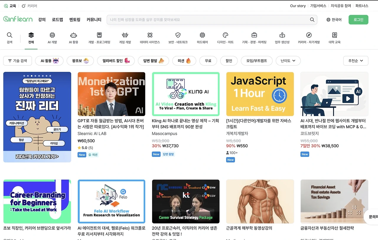 인프런 전분야 1위..
