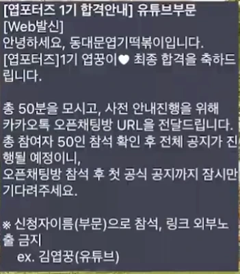 우연히 엽기 떡볶이 서포터즈 1기를 선정한다는 글을 보았고, 주 1-2회 이상은 무조건 시켜 먹는 사람이 나인데, 이건 나 아니면 누가 하겠나 라는 생각에 바로 신청을 하였고 유튜브 부문의 1기 엽꿍이가 되었다.