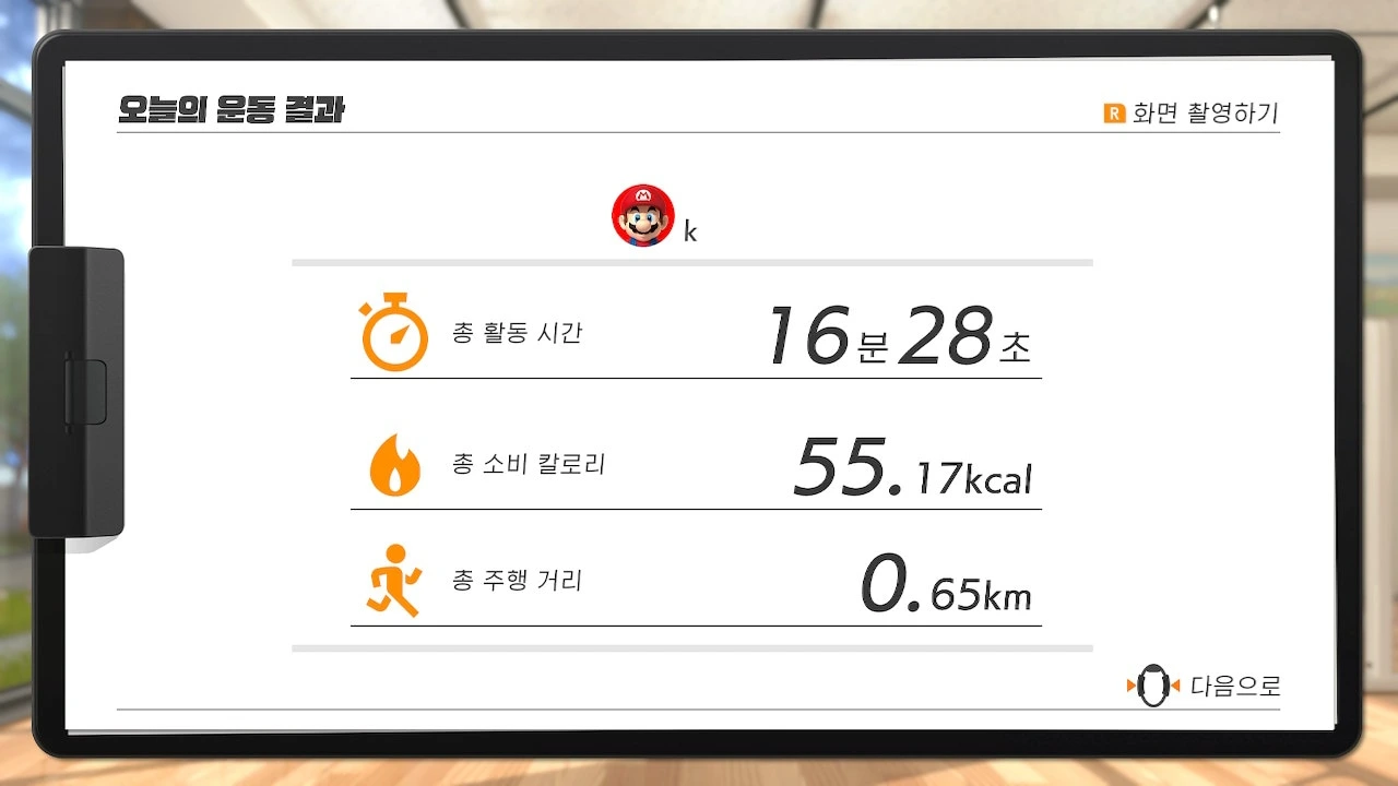 운동도 빼놓을 수 없었다. 나는 몇 개월 전부터 일주일에 3번 운동하고 인증하는 '아바매런'모임에 참여하고 있다. 다이어트를 본격적으로 시작하면서 운동 횟수와 강도를 조금 높였다. 매일 운동을 목표로 했고, 시간도 늘렸다. 운동은 주로 닌텐도 스위치 링피트로 했다. 링피트 어드벤처는 모험하면서 피트니스를 할 수 있는 게임인데 여러 가지 동작을 할 수 있어 전신 운동이 된다. 또, 돈을 모아 아이템을 사고 꾸준히 할수록 레벨도 오르니 재미있게 운동할 수 있다. 하고 나면 땀이 줄줄 흐르고 얼굴이 시뻘게지는 걸 보면 운동 효과도 확실한 것 같았다.