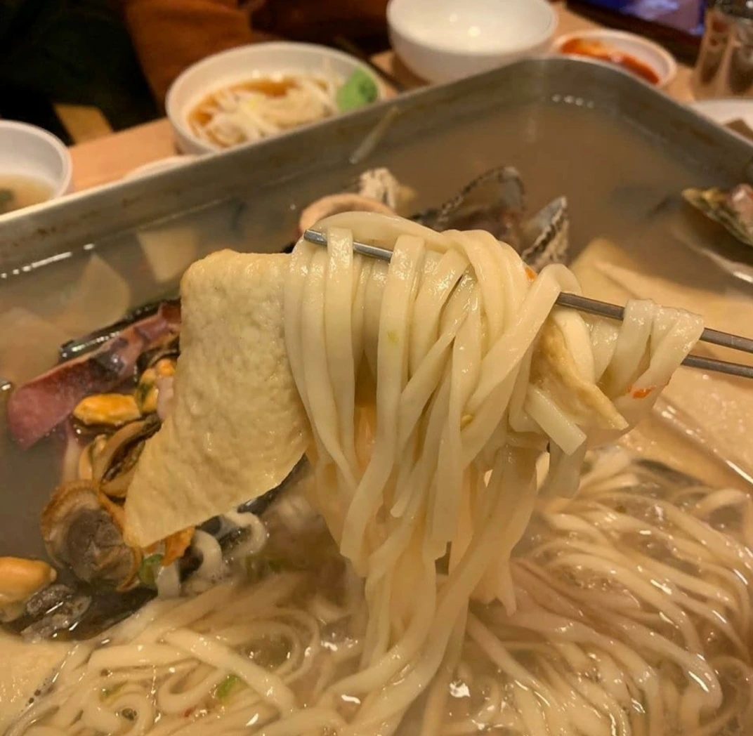 사실 해물은 아무리 먹어도 배가 안 부르다. 그래서 다 먹어갈 때쯤 칼국수 사리와 어묵 사리를 추가해 해물칼국수를 만들어 먹는다. 다른 사리도 있지만 나는 메뉴판도 안 보고 무조건 칼국수다. (글을 쓰다 궁금해져서 검색해보니 우동, 라면, 버섯 사리도 있다.) 쫄깃 탱탱한 면발을 후루룩 먹고나서 불룩해진 배를 두드리면 마음까지 풍요로워지는 기분이다.