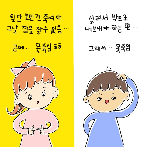 나로 말하자면, 벌레가 내가 자는 사이 우리 집을 후비고 다니는 게 너무 싫기 때문에, 일단 발견한 애는 무조건 죽여야 하는데, 벌레를 만지는 순간 휴지 너머 전해지는 그 까슬함에 소름이 쫙 올라온다ㅠㅠ 그래서 웬만하면 남편이 잡아줬으면 한다. 그러나, 울 남편으로 말할 것 같으면, 모든 생명이 귀하다고 생각하기 때문에, 웬만하면 살포시 잡아서 창밖에 놓아주며, 굳이 나를 해치지 않는 벌레는 잡을 생각도 안 한다. 이러니 벌레 한번 나오면 환장이다. 나는 잡으라고 난리, 남편은 벌레도 생명이다 알아서 죽는다 내버려 두어라 시전.