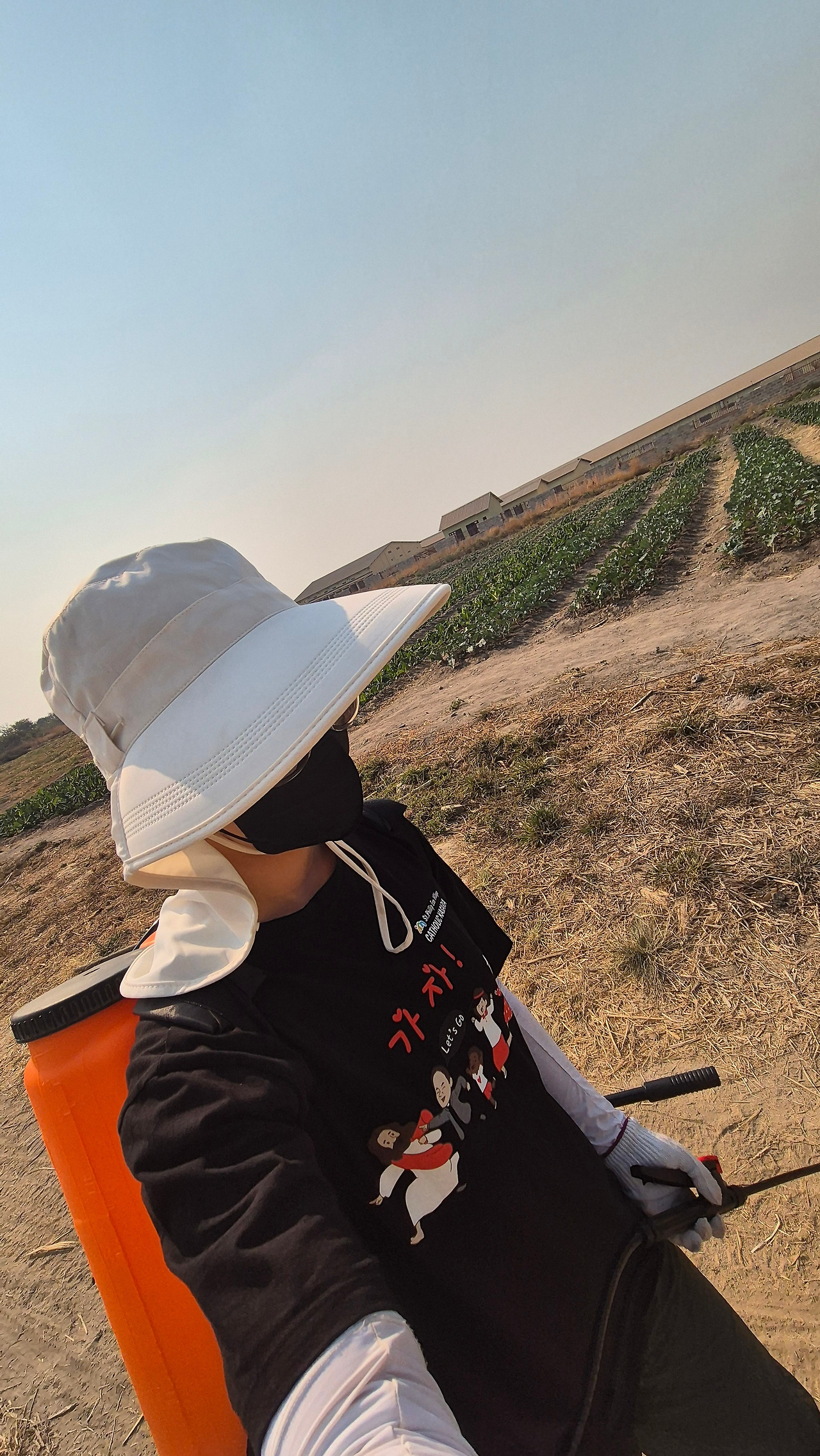 야외 작업은 주로 오후에 이루어졌습니다. 아침저녁과 달리 정오를 넘기면 날이 따뜻해지기에 외출하기 적절합니다. 농사 모자, 선글라스, 팔 토시, 목장갑, 그리고 마스크로 중 무장을 합니다. 마스크는 가장 중요한 아이템이었습니다. 사방에서 날리는 흙먼지를 피하기 위함입니다. 흙바닥을 걸을 때면 마치 겨울왕국의 엘사가 된 기분이었습니다. 엘사가 걸음을 내딛을 때마다 발 밑으로 얼음 결정이 쭉 뻗어나가듯, 제가 걸음을 옮길 때마다 흙먼지가 펑펑 날렸습니다.