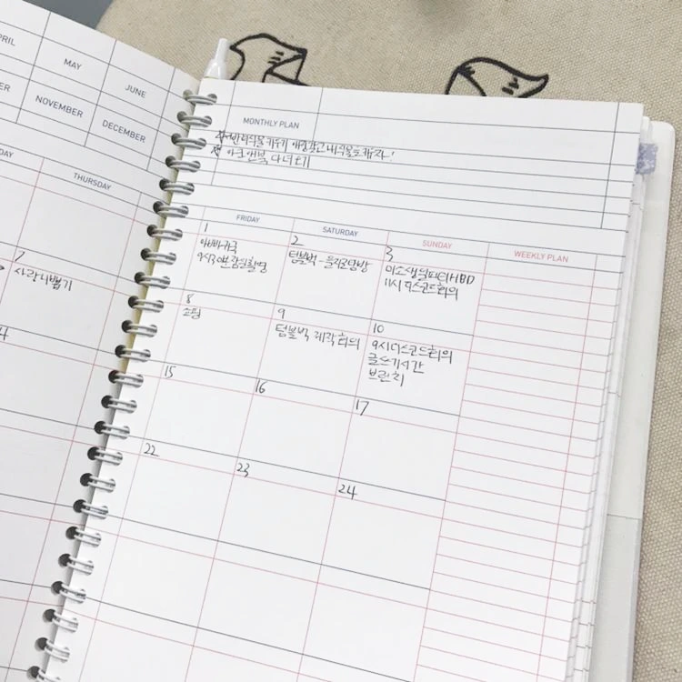 그럼에도 불구하고 아날로그 기록도구가 필요한 법. 중학생 때부터 매년 다이어리를 써왔는데, 이번 해도 마찬가지다. 여러 다이어리를 써봤지만 이번에 산 mmmg 다이어리가 예쁨 + 기록하기 좋아 추천하고 싶다. monthly도 월 목표, 주간 목표를 적기 좋게 칸이 있고, weekly엔 유선 공간과 무선 공간이 있어 to do와 감정을 분리하여 적기 좋다. 손으로 쓰면서, 그림을 그리면서 생각 정리하기 좋은 기록도구.