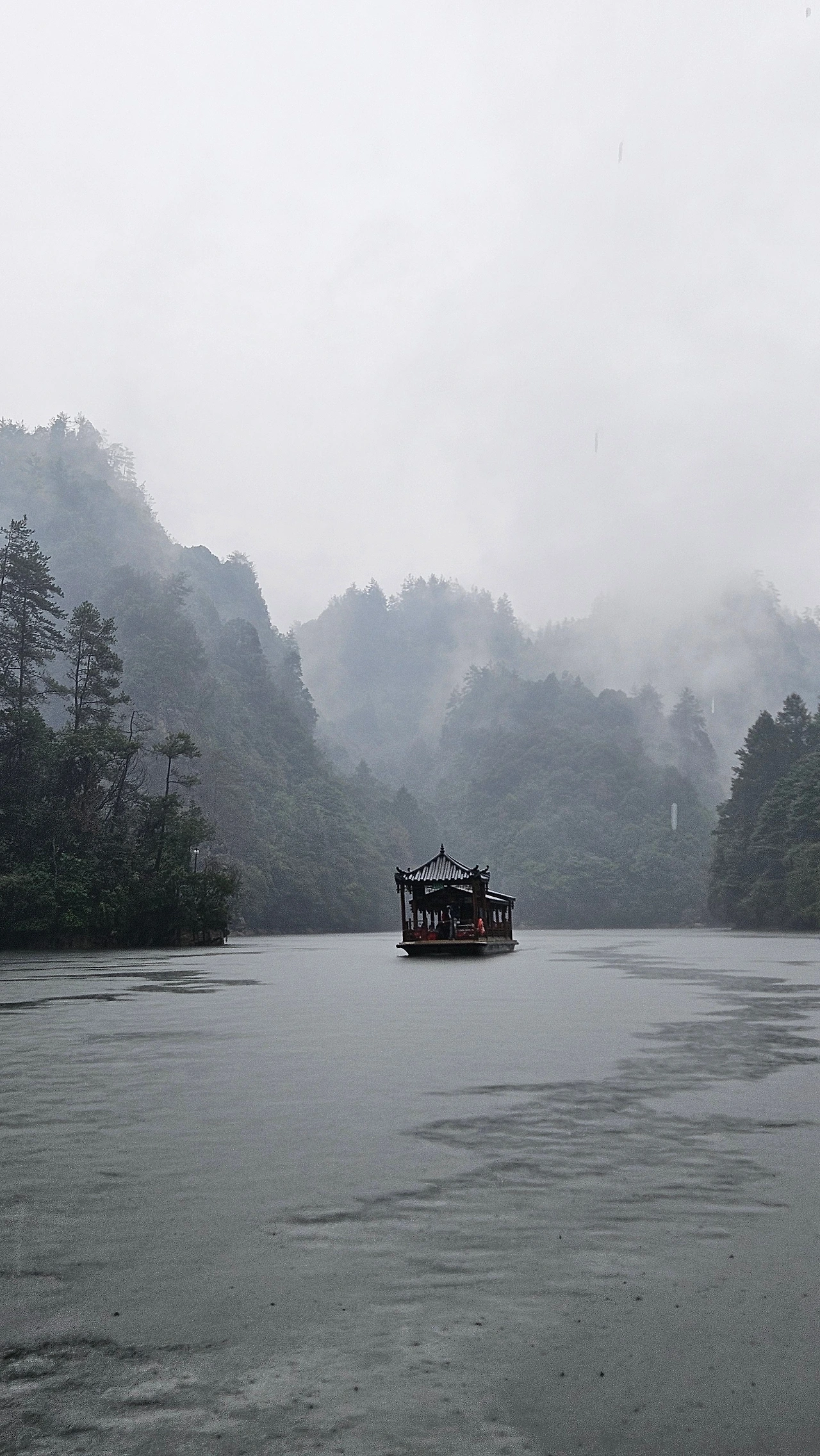 우리 패키지의 장가계 여행은 비행기를 타는 날 오전까지 이어졌다. 장가계 여행은 3대가 덕을 쌓아야 맑은 풍경을 볼 수 있다고 하는데, 우리 일정 중에는 마지막날에만 비가 왔다. 덕분에 산 지형은 맑은 풍경을 모두 볼 수 있었고, 마지막 날에는 보봉호를 보러 갔다. 비가 와도 배가 뜬다는 보봉호는 역시 중국 스케일답게 무려 인공호수라고 한다. 40명 정도가 들어가는 오픈형 여객선을 띄운 보봉호의 풍경은 가히 무협소설 속의 풍경과 같았다. 비구름이 내려앉은 산봉우리와 비에 젖은 바위들을 지나는 배가 있는 풍경은 장가계 여행을 차분하게 마무리하기에 적당했다. 그야말로 중국 스럽기 그지없었다. 이보다 더 중국 스러울 순 없었다.