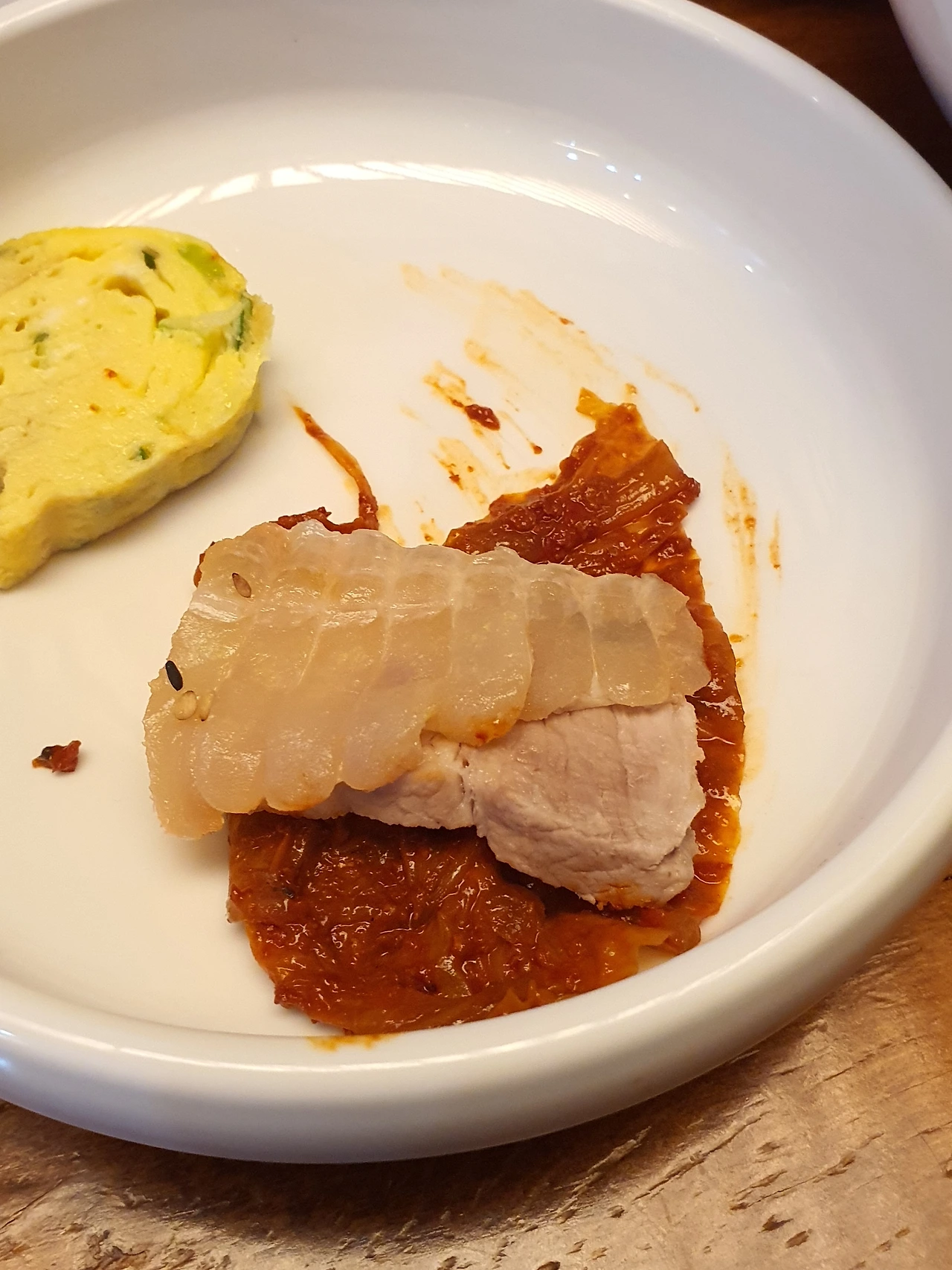 게다가 내 생애 첫 홍어삼합을 경험한 역사적인 날이었다. 주변에서 익히 애주가로 알고 있는 내가 애주가들이 좋아하는 몇몇 안주 중에 도전하지 못 한 대표적인 먹거리가 홍어삼합이었는데, 이웃 식당의 홍어삼합은 홍어의 삭힌 정도나 고기의 삶은 정도도 좋았지만 무엇보다 묵은지의 익힘 정도가 핵심이었다. 아이참 사장님! 정도껏 하셔야죠..
