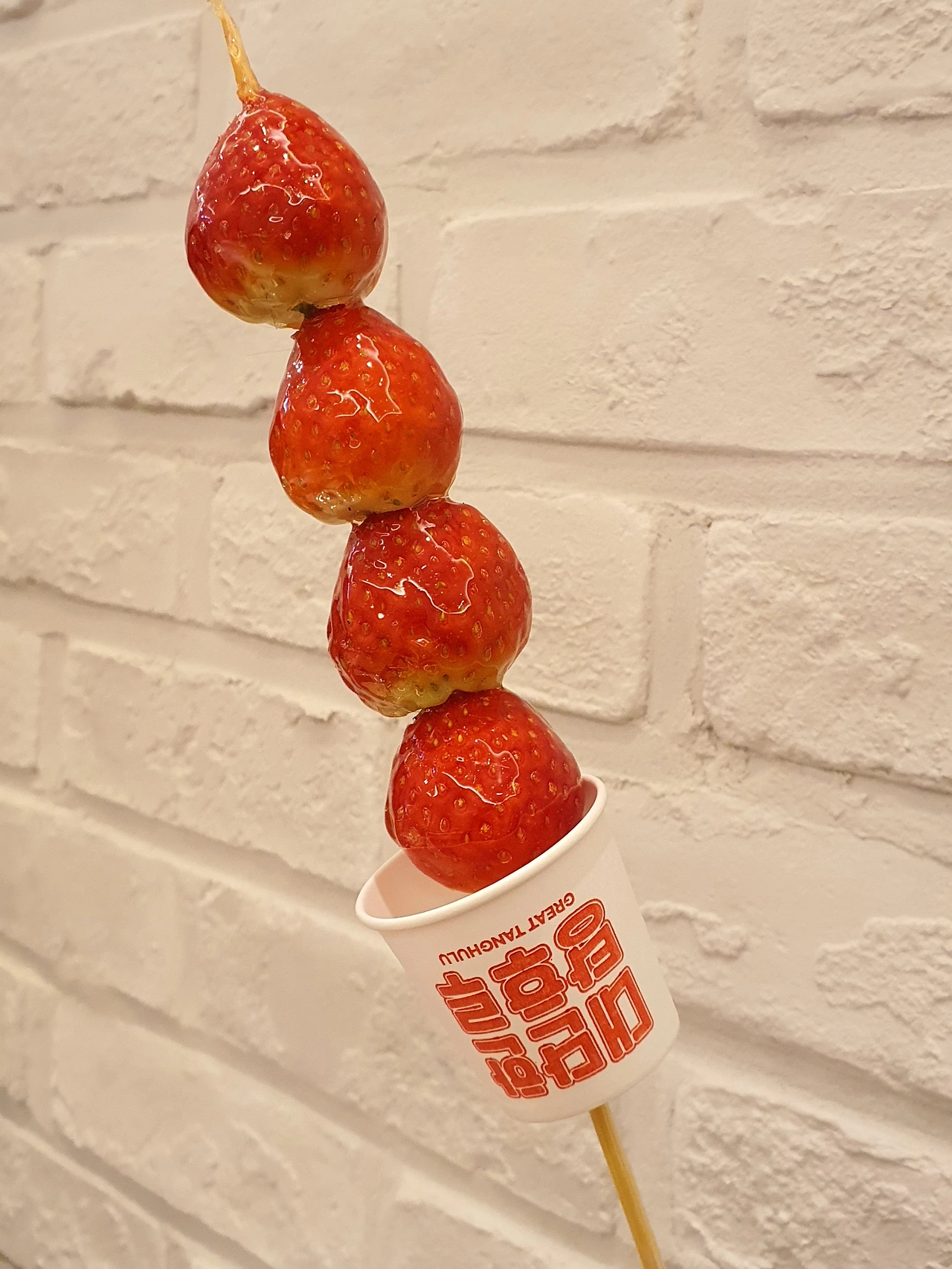 의도치 않게 탕후루 노래를 부르게 됐던 며칠 전, 지인이 딸기 탕후루를 사가지고 놀러 왔다. 그리 크지도 그리 작지도 않은 딸기 네 알이 한 꼬치였는데 겉으로 봐도 설탕 코팅이 두껍지 않아 보였다. 그래서인지 입에 넣고 몇 번 와그작 씹으니 설탕 옷이 깨지면서 딸기향과 맛이 입 속 가득 퍼지는데 와... 신세계였다. 코팅된 설탕이 지나치지 않아 좋았고, 무엇보다 딸기 자체로 이미 달달하고 상큼하니 맛있었다.