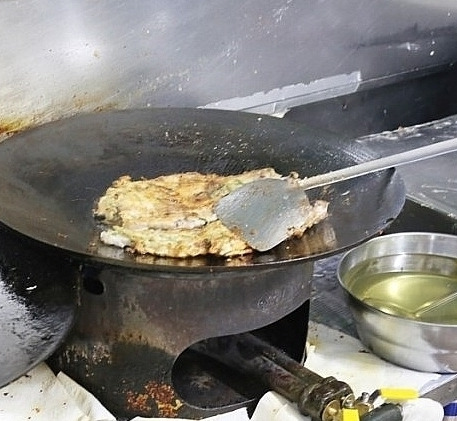 막걸리 집의 주방에는 옛날의 아궁이와 비슷한 화로위에 큰 솥뚜껑이 거꾸로 한 모습으로 자리하고 있었다. 주인장 할머니는 달궈진 솥뚜껑 위에 기름을 몇 바퀴 두르고는 한편에 놓여있던 동그란 그릇에 반쯤 채워져 있는 반죽을 고르게 펴서 놓고 그 위에다 반으로 가른 명태를 통째로 올려놓으셨다. 그리고 그 위에 남은 반죽을 명태의 속살을 가릴 옷을 입히듯 조금씩 명태 전체에 펴 바르셨고 한참을 굽다가 큼지막한 나무 뒤집개 같은 걸로 통 명태전을 뒤집고 전의 옆쪽으로 기름을 보충하며 구우셨다. 기름을 더 넣을 때마다 지글지글 챠아- 하는 소리가 뱃속에서 꼬르륵 소리까지 내게 만들었고 그 소리들은 경쾌했다. 냄새마저 맛있어서 나의 후각과 청각이 그것을 미치도록 궁금해하는 중에 드디어 명태전이 테이블 위에 올라왔다.