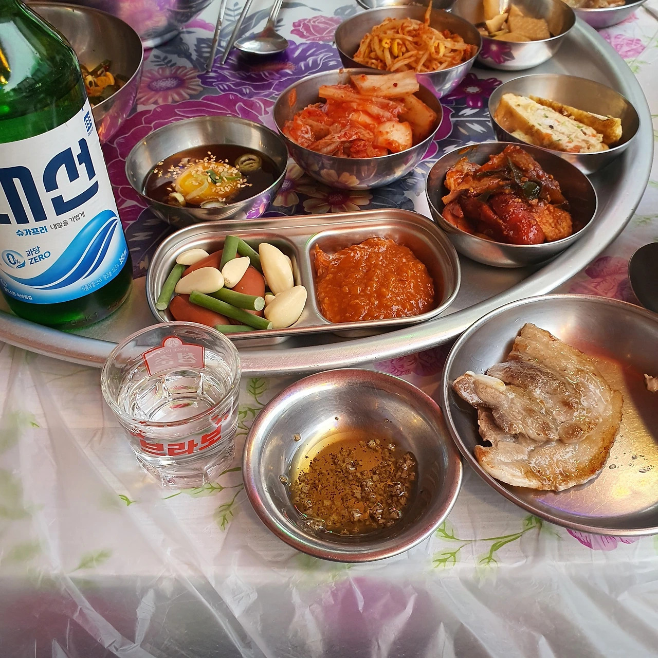 나는 여전히 힘이 들 때면 '냉삼에 소주 한잔'이라는 공식을 몸소 실천한다. 수학의 정석에 나오는 공식 따위는 내 삶에 도움 되지 않지만 이 공식만큼은 내 삶에 있어 베프 자리를 내어줄 수 있겠다 싶을 정도로 도움이 된다. 오래된 모양새가 정겨운 불판 위에 아무렇게나 던져놓아도 알아서 자리 잡으며 지글지글 끓는 소리를 내며 구워지는 기름진 냉동삼겹살을 굳이 기름장에 찍어 한입 먹고 그 기름진 느낌을 개운하게 내려주는 맑은 알코올의 목 넘김에 이 공식은 비로소 성립된다.