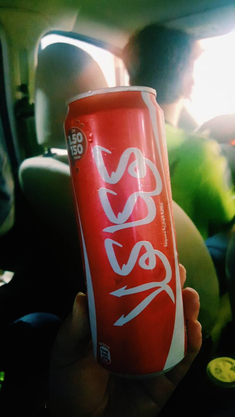 경기장에서 조금 벗어났더니 주유소 같기도, 편의점 같기도 한 곳이 보여 정차했다. 간이 휴게소 같은 느낌이었는데 상품이 꽤 준비가 잘 된 매장이었다. 물과 음료수를 여러 개 골랐는데, 나는 당연히 콜라를 택했다. 그런데 콜라의 모습이 특이했다. 우리가 흔히 알고 있는 빨간색의 콜라 캔인데 사이즈가 손바닥을 쫙 편 것보다도 컸고, 낯선 기호 같은 글씨가 쓰여 있었다. 가만히 보고 있다가 이내 여기가 아랍어를 쓰는 국가라는 것을 깨달았다. 중동에서 마시는 콜라라니... 신기했다.