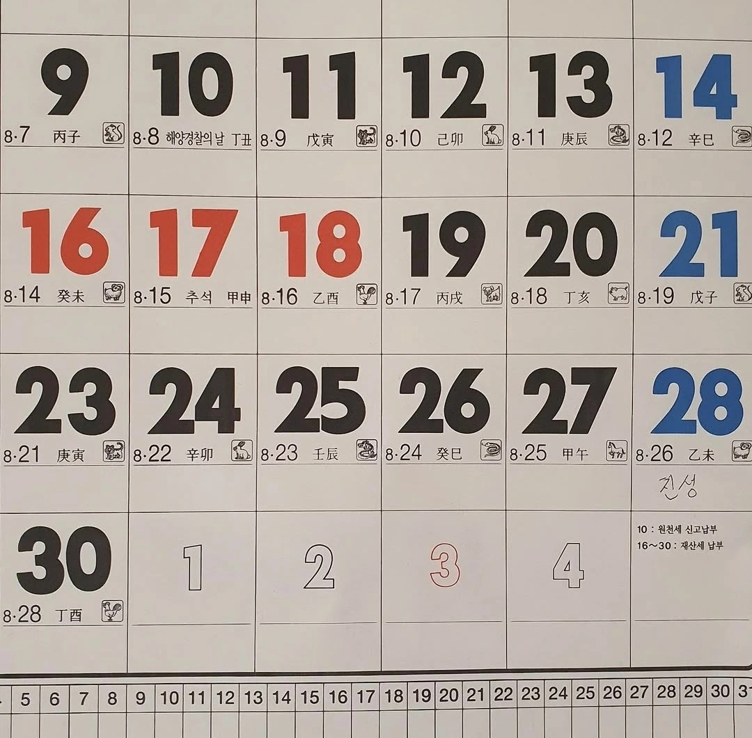 연휴는 쏜살같이 지나갔고 연휴의 후유증으로 목금토 장사만 했지만 체감 피로는 높았던 주간. 일요일 늦잠을 자고 남아있는 추석 음식으로 잡탕을 끓여 맛있게 먹고 전국노래자랑을 보고 있을 때였다. 마침 참가자가 진성의 노래를 불렀다. 그러고 보니 날짜가 다가오네? 하면서 달력을 보다가 정말 오랜만에 크게 웃었다. 9월 28일 날짜 아래 서툰 글씨로 '진성'이라고 쓰여있는 걸 보고.
