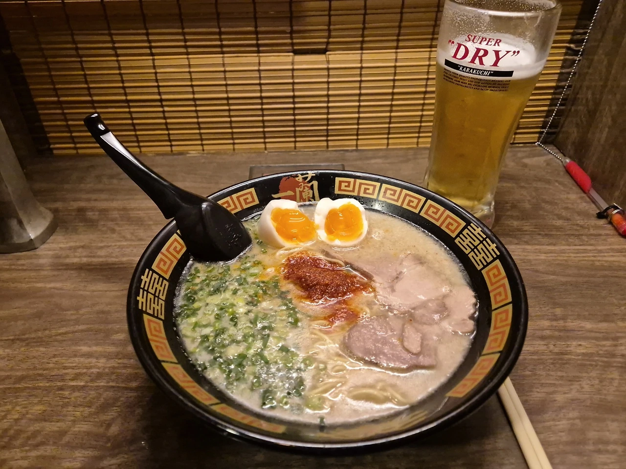 이노가시라 고로처럼 나는 길 위에서 갑자기 배가 고파졌고 배가 고픔을 느낀 순간부터는 급속도로 고파져서 힘들어지는 사람인 걸 알기에 얼른 구글맵을 열었다. 일에 대해서는 파워 J인 나는 여행에서만큼은 계획 없이 움직이는 편이라 뭘 찾아보지도 않아서 주변에 뭐가 있는지도 몰랐다. 다만 계획한 것이 딱 하나 있었다. 후쿠오카에서 첫 끼로는 무조건 라멘과 생맥주로 먹겠다는 것.
