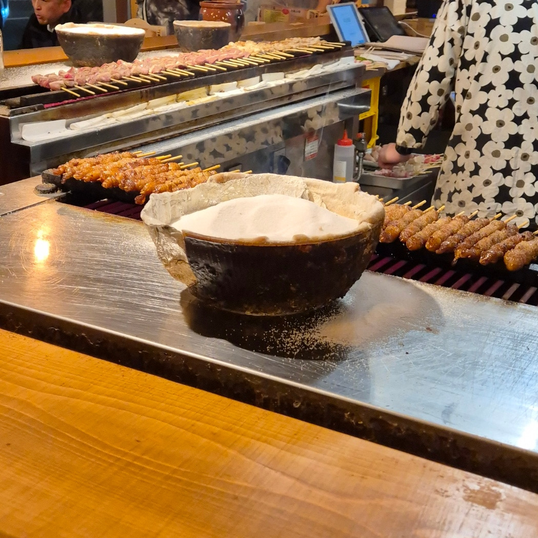 문을 열고 들어가자마자 꼬치를 굽는 자리에 서있던 분이 이랏샤이마세! 하고 큰 소리로 인사했다. 그리고 몇 사람이냐고 묻길래 혼자라고 대답했더니 다찌석으로 안내해 주었다. 자리에 앉은 내게 다가온 그분은 짐작컨대 주인장 같았다. 메뉴를 보여주고 정해지면 불러달라고 할 뿐인데도 친절함과 세심함이 느껴졌다.