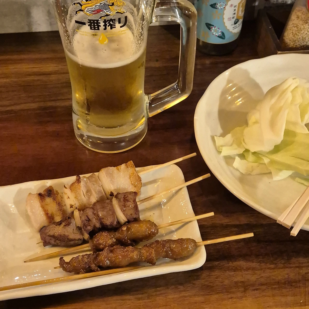 두 번의 퇴짜를 겪고 배가 고플 대로 고파진 나는 일단 생맥주를 주문하고 천천히 꼬치 메뉴를 살폈다. 생맥주를 받을 때 기본안주로 양배추가 먼저 나왔는데 접시 가득 담아 나온 양배추는 보기만 해도 신선했다. 양배추 특유의 짠내가 나지 않고 씹을수록 달달한 것이 채소가 채소 자체로도 이렇게 맛있을 수 있구나 오랜만에 그런 생각을 했다. 물론 양배추용 소스를 뿌려먹는 게 더 맛있었지만 말이다.