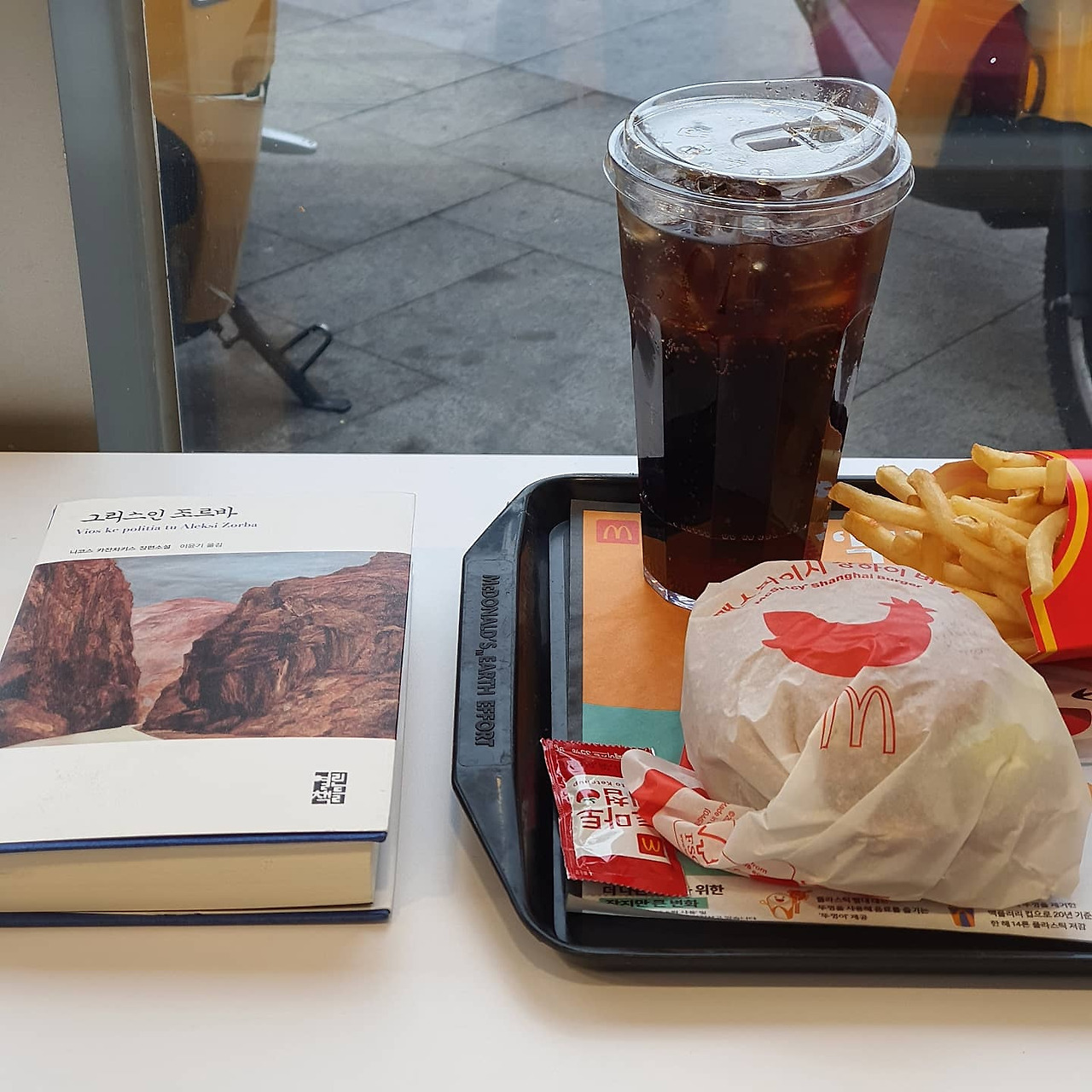 문을 열고 들어가자마자 내 키보다 높은 카운터에 점원이 몇 분 서서 우렁차게 인사를 했다. 나는 그 당찬 인사에도 압도당하고 말았다. 거의 울상을 하고 메뉴판을 올려다보고 있으니, 눈치 빠른 점원 언니 한 분이 주문을 도와주셨다. 뭐라고 하는지 알아들을 수는 없었지만 그저 그 언니께 감사한 마음으로 “네”만 반복하다가 주문을 당했고(?) 계산을 했다. 까치발을 하고 카운터에 붙어 서서 동전지갑에 모아둔 동전을 털어서 내려놓는 나를 귀엽게 본 점원 분들은 다들 친절히 대해주셨다. 햄버거 세트가 놓인 쟁반을 내게 쥐여 주시고 맛있게 먹으라고 인사해 주시는데 세상에, 그때의 그 기분을 표현할 방법이 없다...