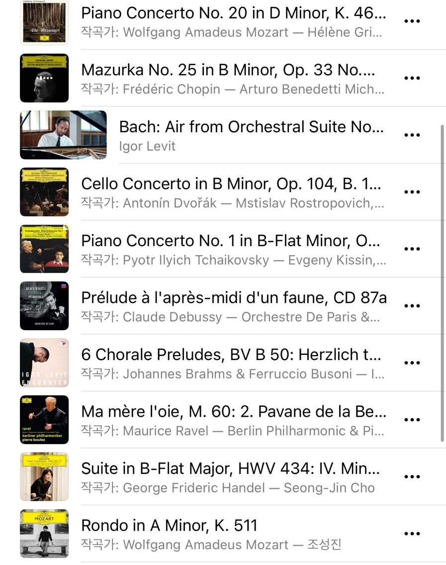 이런 큐레이션으로 저는 마음의 수련을 아침부터 합니다. 짜증나는 지옥철, 일상들 힘들어서 소리치고 싶은 날들에서 그냥 조용히 클래식음악을 듣는 것이 제 유일한 힐링입니다.