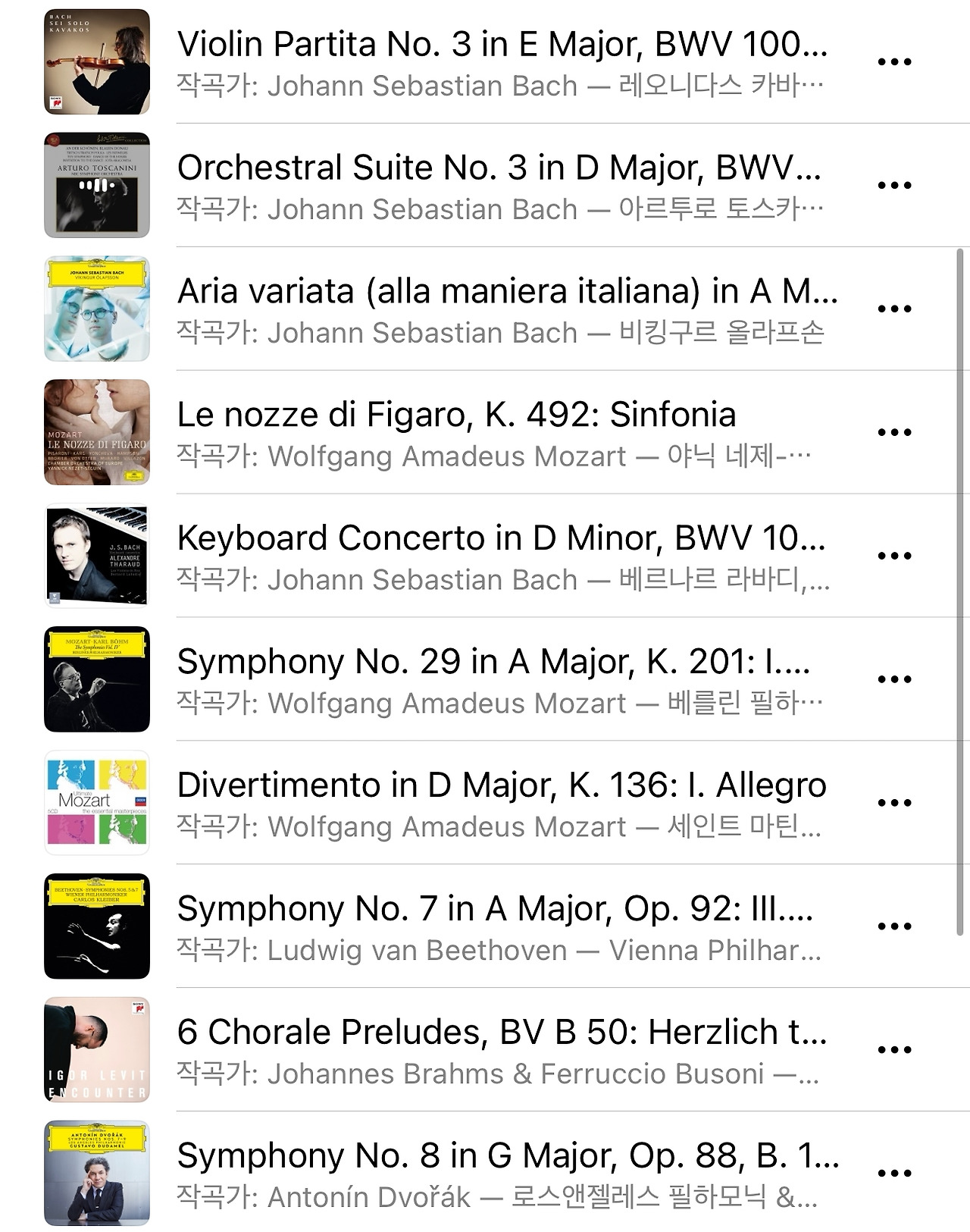 자장가로도 추천드립니다. 근데 플레이리스트에서 그럼 모차르트랑 드보르작은 빼고 유기적으로 들으셔도 되고요!