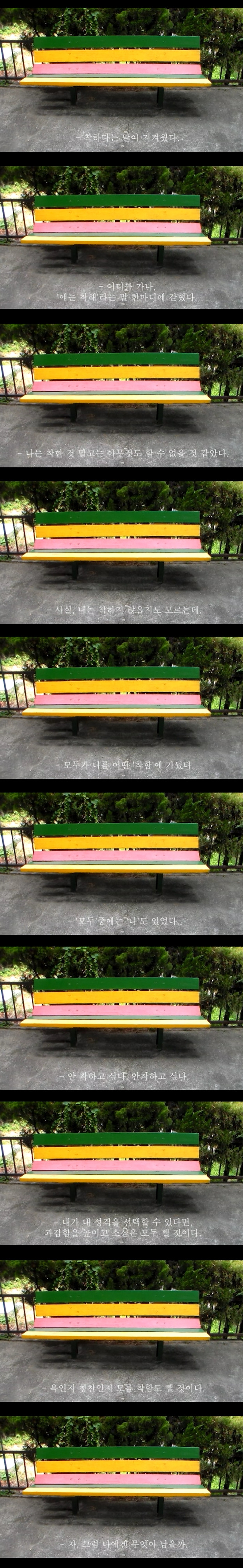 그중에서 나를 가장 많이 감싸고도는 수식어는 '착해'였다. 이야기를 잘 들어주고, 분위기를 즐겁게 만들어주고, 편안하게 해 주고, 잘 웃어주고……. 그 모든 행위가 '착함'으로 굳혀졌다. 나 착해서 그런 거 아닌데, 그냥 집에 빨리 가고 싶어서 그런 건데, 그거 말고는 어떻게 해야 할지 몰라서 그런 건데, 너 좋으라고 그런 거 아닌데, 너한테 착하다는 소리를 들으려고 그런 거 아닌데, 정말인데. 입 밖으로 나오려는 말이 수십문장이었지만 오물오물 씹어 넘겼다.