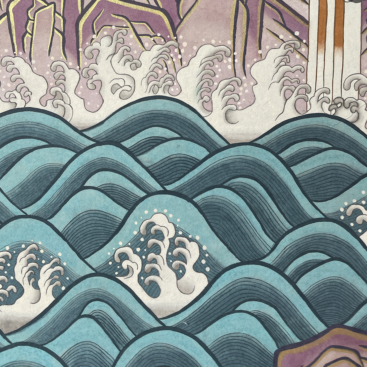 뽀얀 파도를 만들기 위해선 역바림을 해야 한다. 역바림은 말 그대로 바림을 반대로 해주는 것인데 흰색을 더 뽀얗게 보이도록, 그래서 그림이 더 완성도 있도록 해준다.